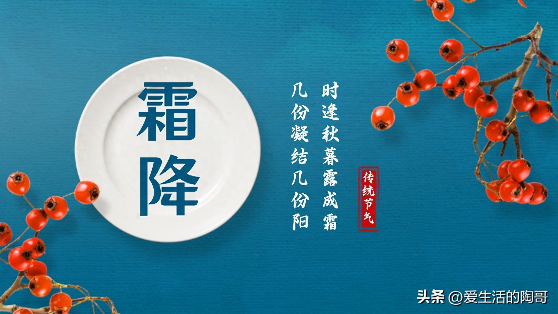 10月23號就是霜降了,是24節氣的第18個,也是秋季的最後一個節氣。霜降過後,不僅天氣越來越冷,也意味着冬天的開始,因此大家要抓住秋末的時節,好好的愛護自己的身體,健康的走進一年最冷的時節。