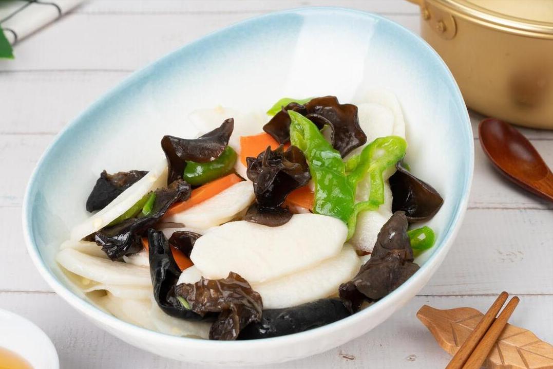 用到:山藥、胡蘿蔔、木耳、青辣椒、食鹽、味精、蔥花