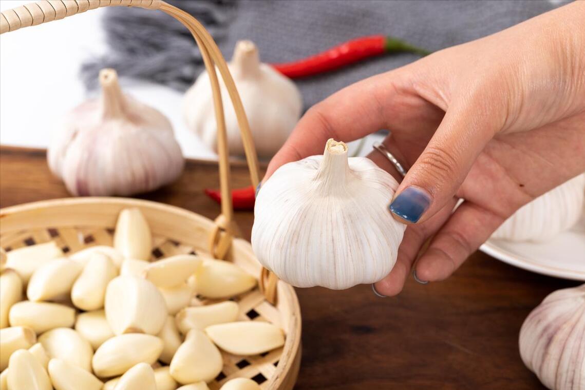 1、準備好大蒜,將其一瓣一瓣的處理好,把不好的蒜瓣挑出來扔掉,隨後將其放在通風處晾上幾個小時,把多餘的水分給晾乾,這樣儲存時間會更長。