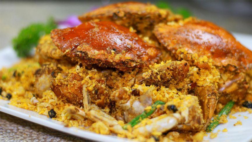 避風塘炒蟹是廣東沿海地區的一道特色美食,以其獨特的風味和鮮美的口感而受到人們的喜愛。選用新鮮的螃蟹,將其洗淨處理後切成小塊。鍋中熱油,將螃蟹塊放入鍋中炸至金黃色撈出備用。接着在鍋中留少許底油,放入蒜末、薑末、幹辣椒等調料炒香,然後加入麪包糠翻炒均勻,炒至麪包糠呈金黃色。最後將炸好的螃蟹塊倒入鍋中,與麪包糠一起翻炒均勻,使螃蟹塊均勻地裹上面包糠。避風塘炒蟹色澤金黃誘人,蒜香味濃郁,螃蟹肉鮮嫩多汁,口感酥脆。那獨特的香味讓人聞之食慾大增,喫起來更是回味無窮。這道菜不僅是一道美味的佳餚,更是廣東沿海地區飲食文化的一個縮影。