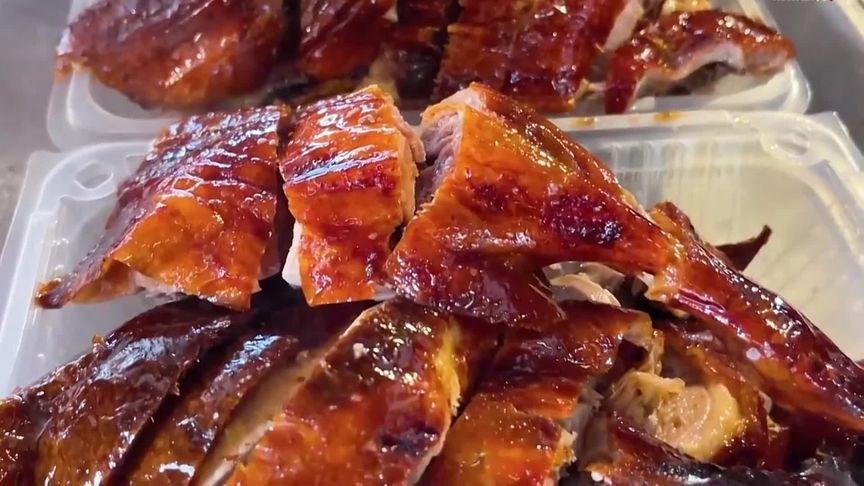 燒鵝是廣東燒臘中的佼佼者,以其皮脆肉嫩、香味濃郁而聞名遐邇。選用優質的鵝,經過獨特的處理和醃製後,掛在特製的烤爐中用明火烤制。烤制過程中,鵝肉吸收了炭火的香氣,表皮逐漸變得金黃酥脆,皮下脂肪融化,形成一層香脆的外皮。燒鵝出爐後,香氣四溢,讓人垂涎欲滴。切塊裝盤後,搭配酸梅醬食用,酸甜的味道與燒鵝的油膩相互中和,使得口感更加豐富。一口咬下去,先是感受到酥脆的外皮在口中破裂的美妙聲響,接着是鮮嫩多汁的鵝肉和濃郁的香味,讓人陶醉其中。