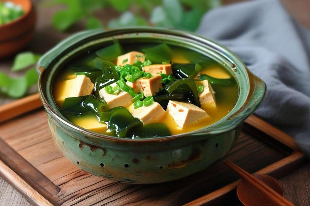 2、鍋子裏倒油,燒熱以後下入海帶翻炒一會兒,接着倒入薑絲爆香,緊接着往裏面添上適量的清水,大火燒開之後再把豆腐倒進去,然後繼續煮上10分鐘左右,隨後加入鹽、白胡椒粉、雞精來進行調味,將其攪拌均勻以後,就可以關火,盛出來開喝啦。