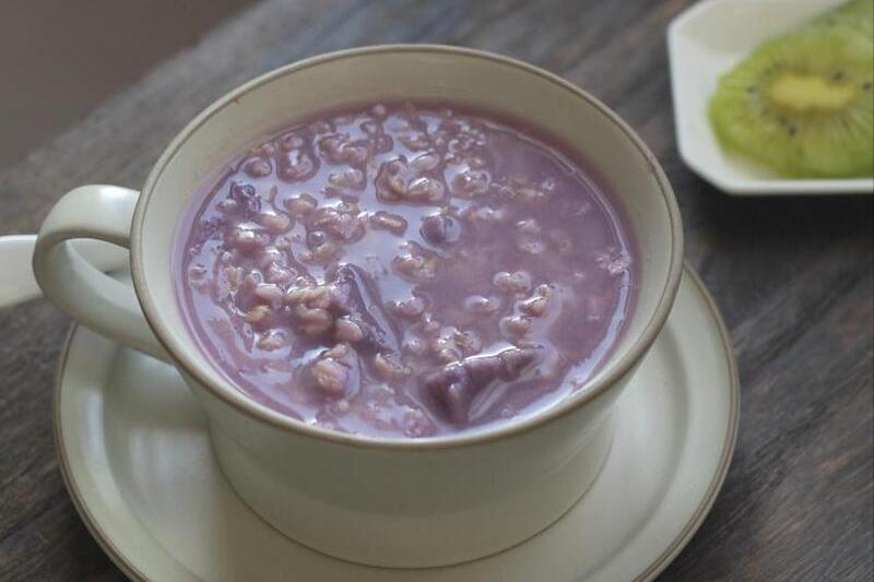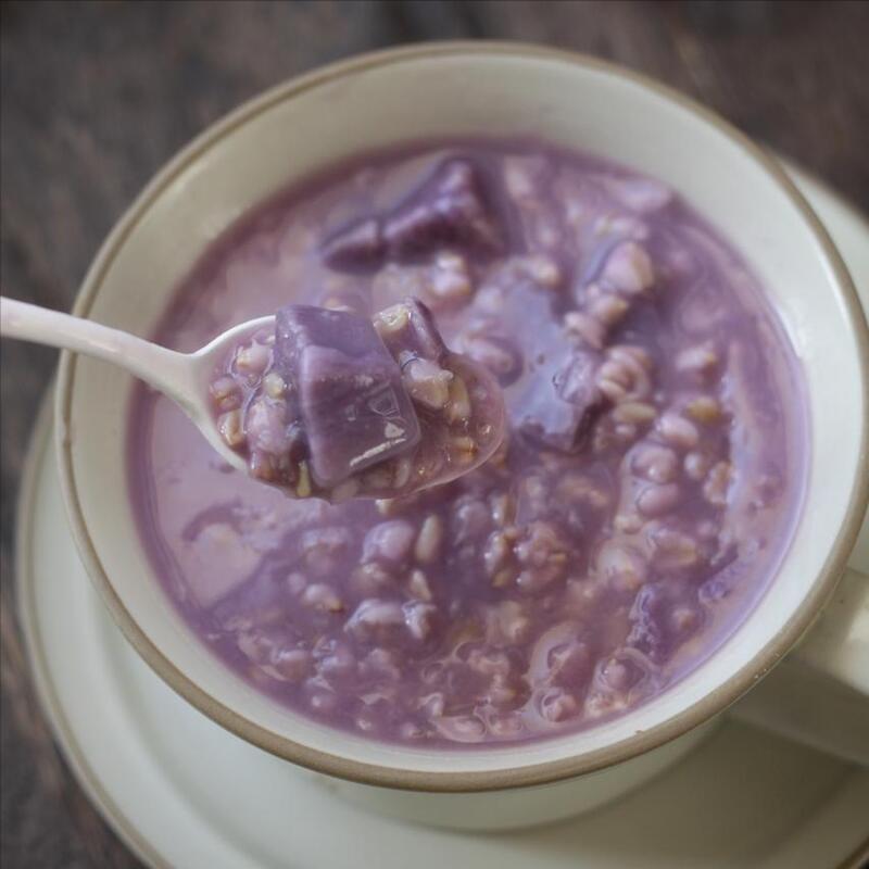 我們準備幾個紫薯,洗淨後削皮,然後切成小塊,接下來往鍋子裏倒水,把紫薯也加進去,大火燒開之後繼續煮上10幾分鐘,直至將紫薯煮到軟爛,隨後再往裏面放上燕麥和冰糖,繼續煮10分鐘左右,就可以盛出來開喝了。