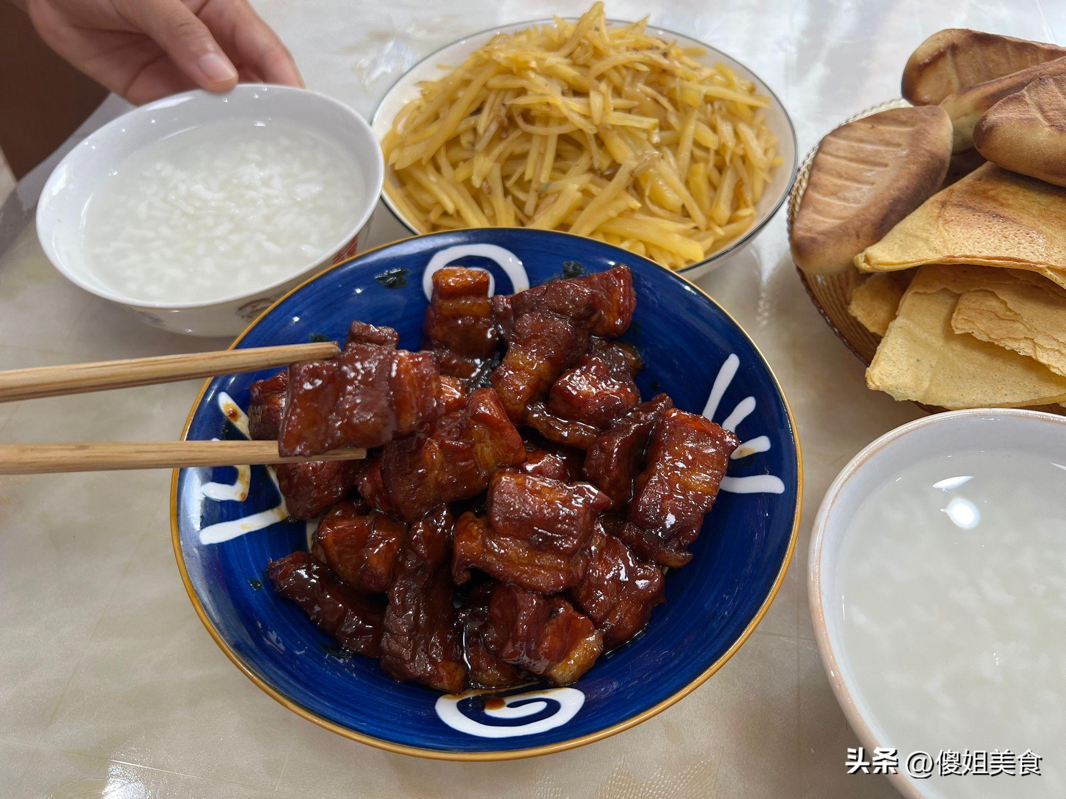 大約燉了一個小時,肉塊已經變得軟糯,湯汁濃稠,散發出濃郁的香氣。裝盤時撒上一點蔥花點綴,顏色紅亮,光看着就讓人食慾大增。老伴夾起一塊肉,邊喫邊直點頭,滿臉都是滿足的表情。