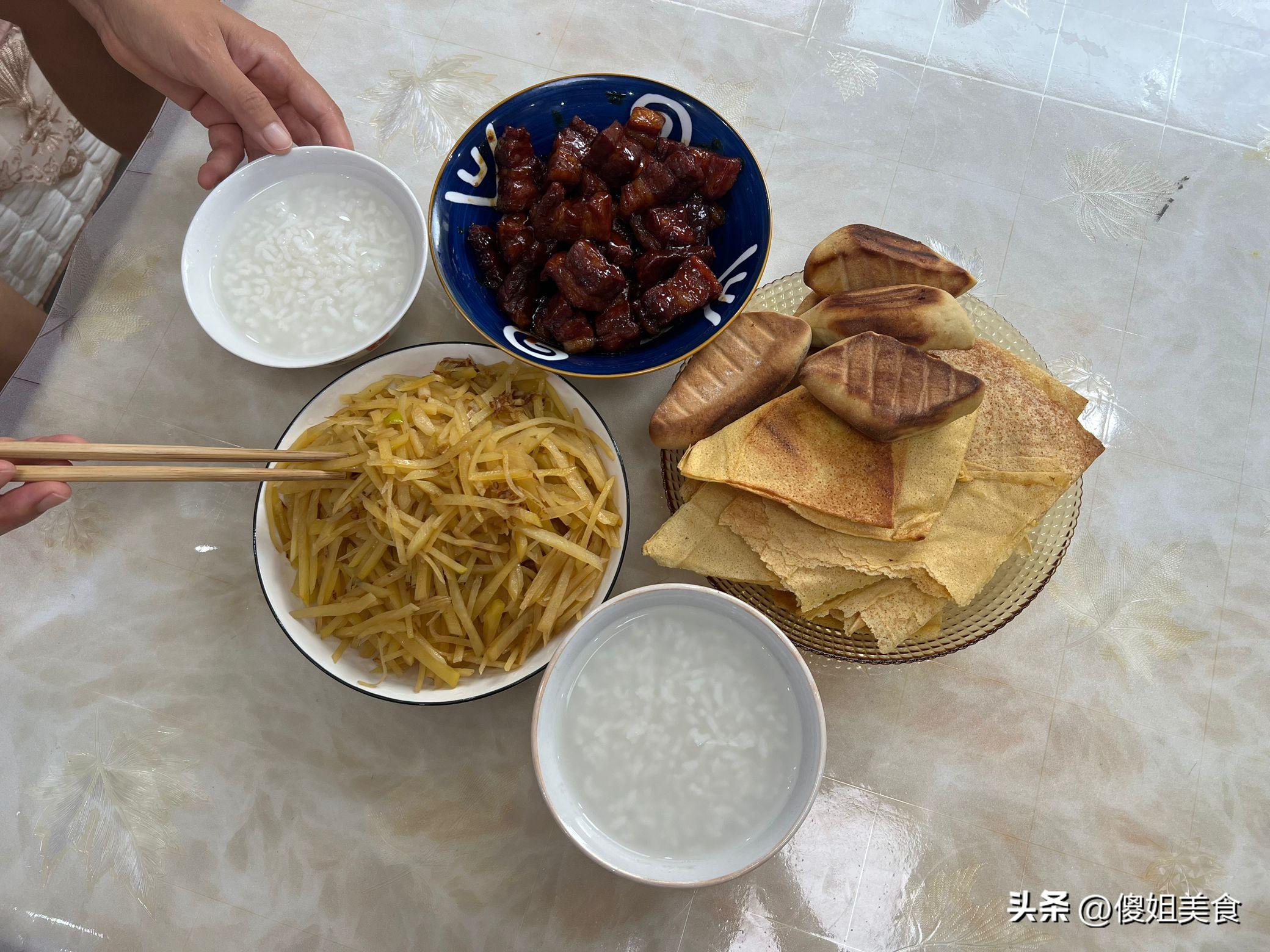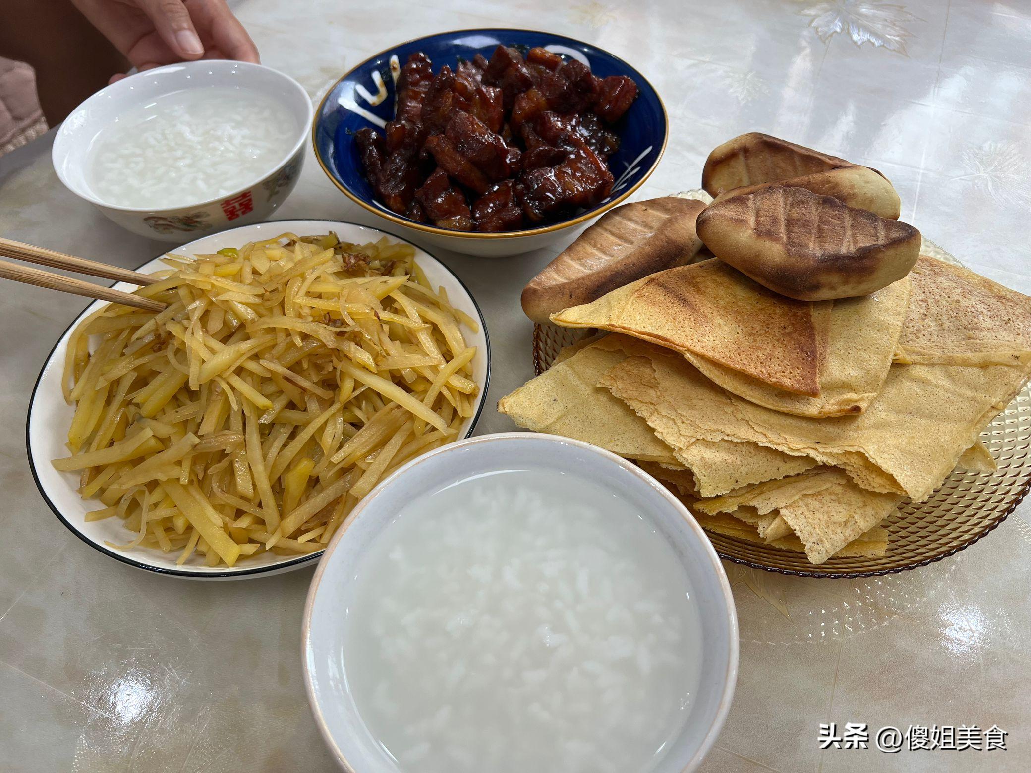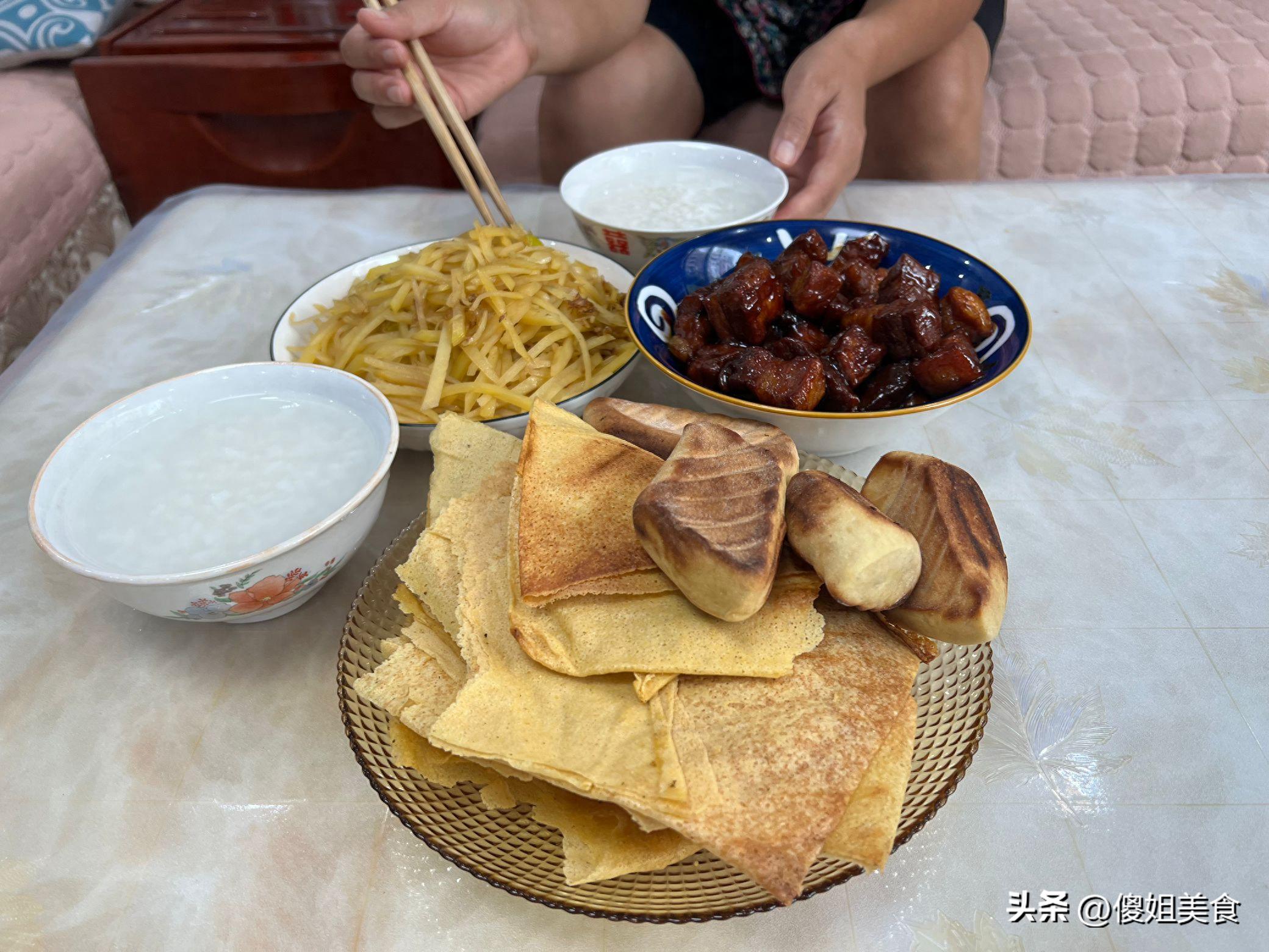 家裏的煎餅也是不可少的。煎餅薄如紙,煎得兩面金黃,配上一碗熱騰騰的米粥,清淡又暖胃。我們家每天的飯桌上都少不了這碗米粥,老伴常說,喫完飯喝碗粥,胃裏舒服,身體暖和。發到朋友圈的照片很快就收到了不少點贊和評論。大家都說,看着這些家常飯菜,有種莫名的親切感。有人說,這樣的飯菜最能勾起家的味道;也有人說,雖然簡單,但每一口都透着幸福。看到這些留言,我和老伴都感到很開心。其實生活就是這樣,簡單的飯菜,有時候比大魚大肉更讓人滿足。
