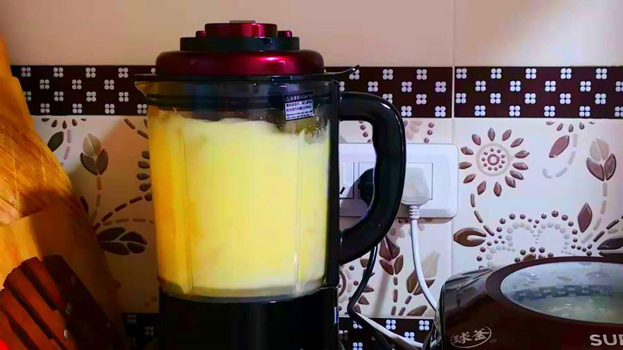 接着把處理好的生薑(約200克)切成小塊,放到破壁機中,再加入400毫升清水,將其打成細膩的薑汁。