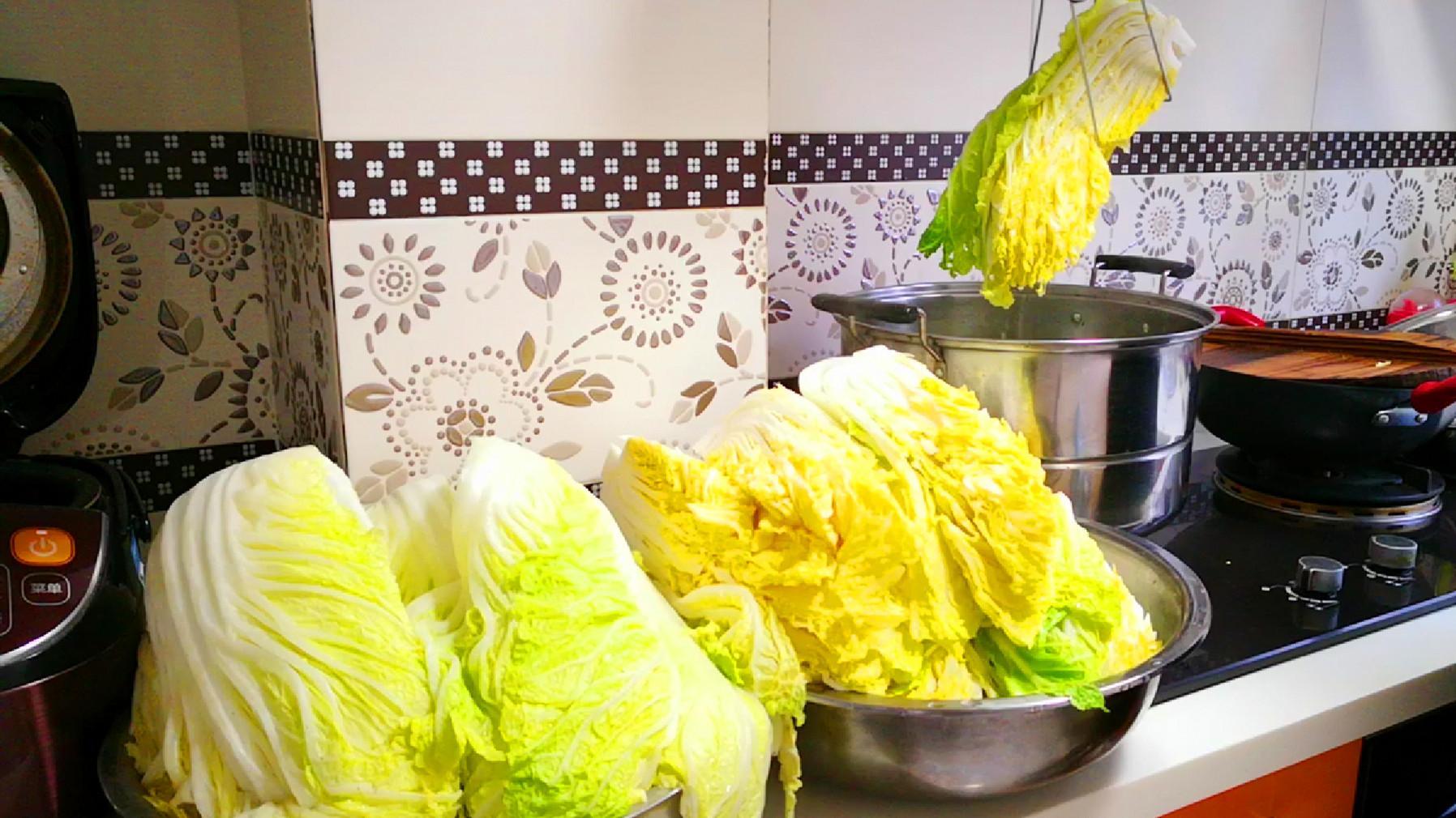 醃酸菜可以直接生醃;不過如果是自己喫,最好再加這一步燙菜,把白菜燙一燙再醃,既可以醃得更透、味道好,能夠加速酸菜發酸,而且白菜經過高溫的殺菌,醃好後不易長毛不發黴。