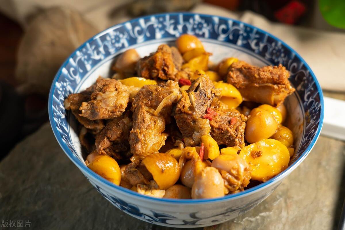 2、排骨,當板栗與排骨相遇,一場味覺的魔法就此展開。將處理好的排骨焯水去腥,再與炒香的板栗一同放入鍋中,加入適量的調料,小火慢燉。隨着時間的推移,香氣逐漸瀰漫開來;想象一下,當你揭開鍋蓋的那一刻,熱氣騰騰中,板栗的香甜與排骨的肉香相互交融,直撲鼻腔。夾起一塊排骨,輕輕咬上一口,肉質鮮嫩,入口即化,而板栗則吸收了排骨的鮮美,口感更加豐富。