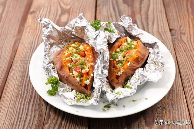 - 將紅薯包裹在錫紙中,放入預熱至200°C的烤箱中層,烤約45-60分鐘,直至紅薯變軟,表皮微焦。