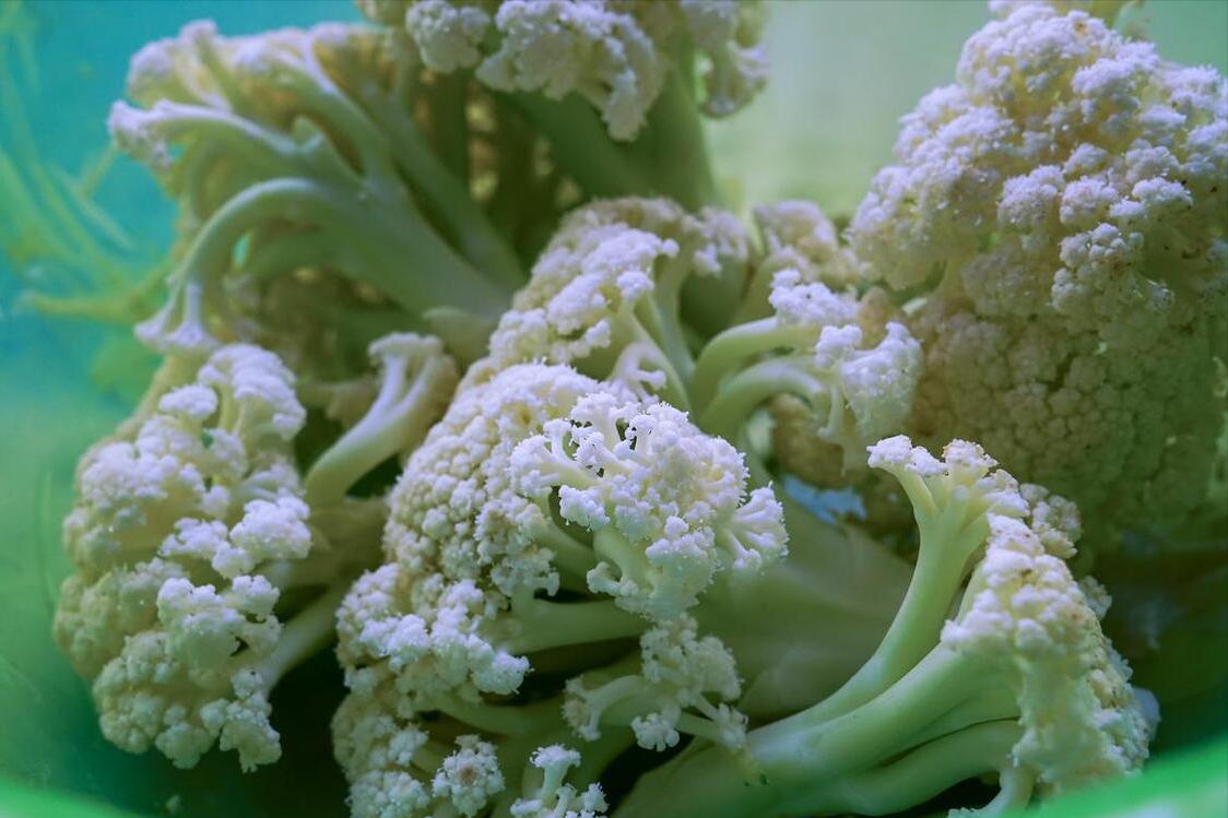 2、接下來就是花菜的處理了,到底是洗乾淨了直接下鍋,還是先焯水再下鍋,還是過一遍油再下鍋?都是不對的,我來教大家正確1招,而且還是相當簡單的一招,往盛有花菜的小盆裏,添上適量的清水。