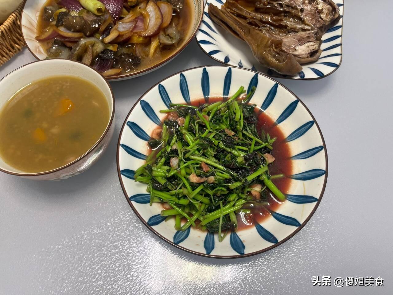 孩子正是長身體的時候都喫一些蔬菜有利於補充體內各種所需要的營養物質,平時孩子也不喜歡喫蔬菜,但是這次炒的這個空心菜孩子很愛喫。空心菜有一種清香的味道,炒的時候用蒜粒熗炒一下,放點蠔油和鹽調味就可以,大火快速的翻炒,把空心菜炒軟炒熟就可以。炒熟的空心菜鮮美爽脆,清淡爽口,很解油膩。