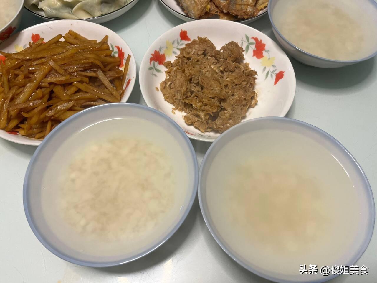 和公婆住在一起我感覺特別好,每天早上睜開眼、晚上下班後都能喫到現成得飯菜,而且老人做的飯菜都是清大口感,一點也不鹹也不油,非常得合胃口,還特別得養生。平時我和兒子在家都是湊合的喫點,每次炒菜都會多炒一些留着下頓喫,現在公婆來了不一樣了,每天都有新鮮的飯菜,熱乎乎的粥喝。每天晚上我下班後就去接兒子放學,放學回到家進門就是洗手喫飯,今天婆婆做的晚餐我曬了下朋友圈火了,網友:真寒磣,不能睜眼看!我感覺婆婆做的飯菜很好喫,很合胃口,下面把我一家四口的晚餐分享給大家看看吧。