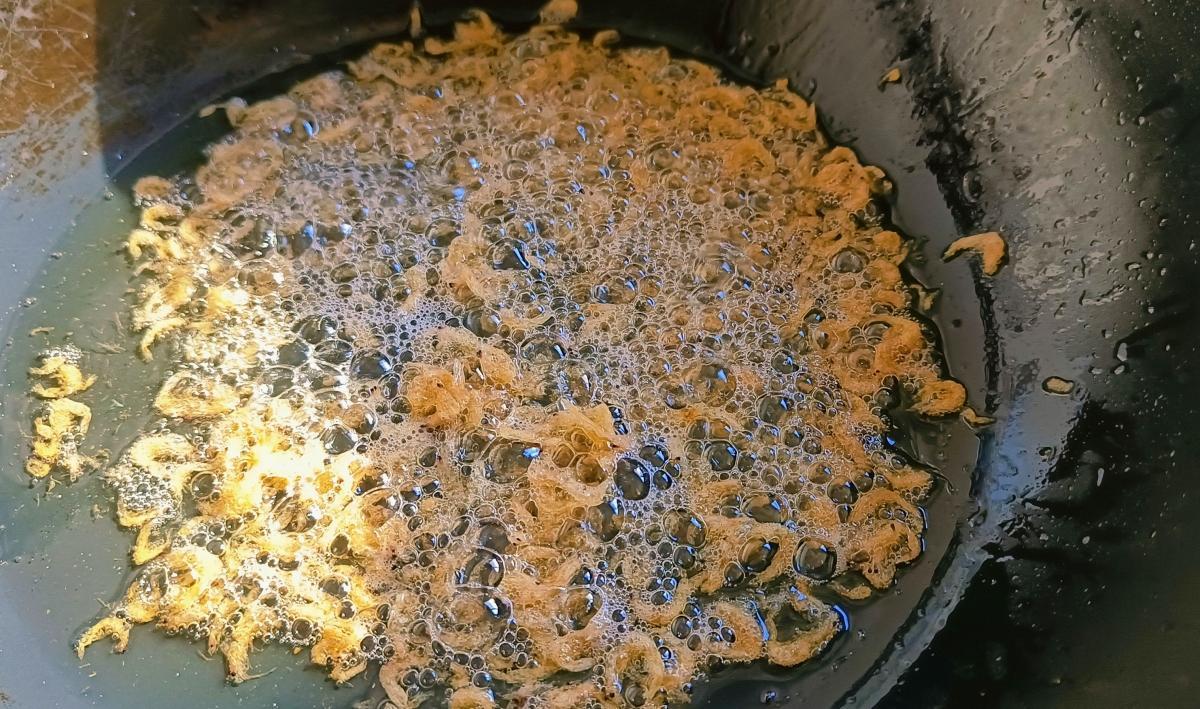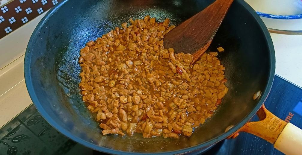 5.另起鍋加油,下入一把蝦皮翻炒,炒香後盛出備用。