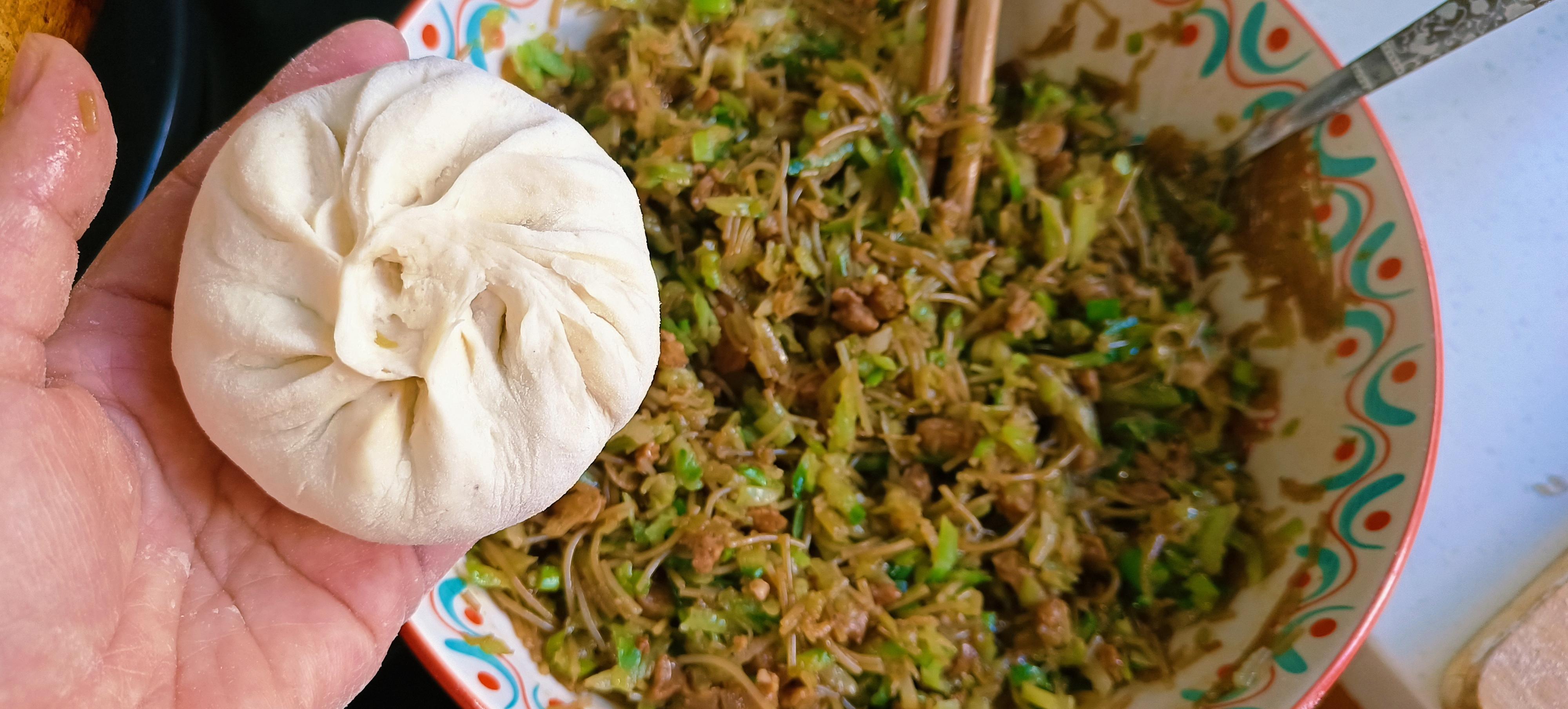 時間到了以後再開火,上氣後繼續蒸15~20分鐘後關火,再燜三五分鐘後即可開鍋,美味即成,香噴噴的蘿蔔粉條豬肉包子就做好了,鮮香可口,一頓三個不夠喫!
