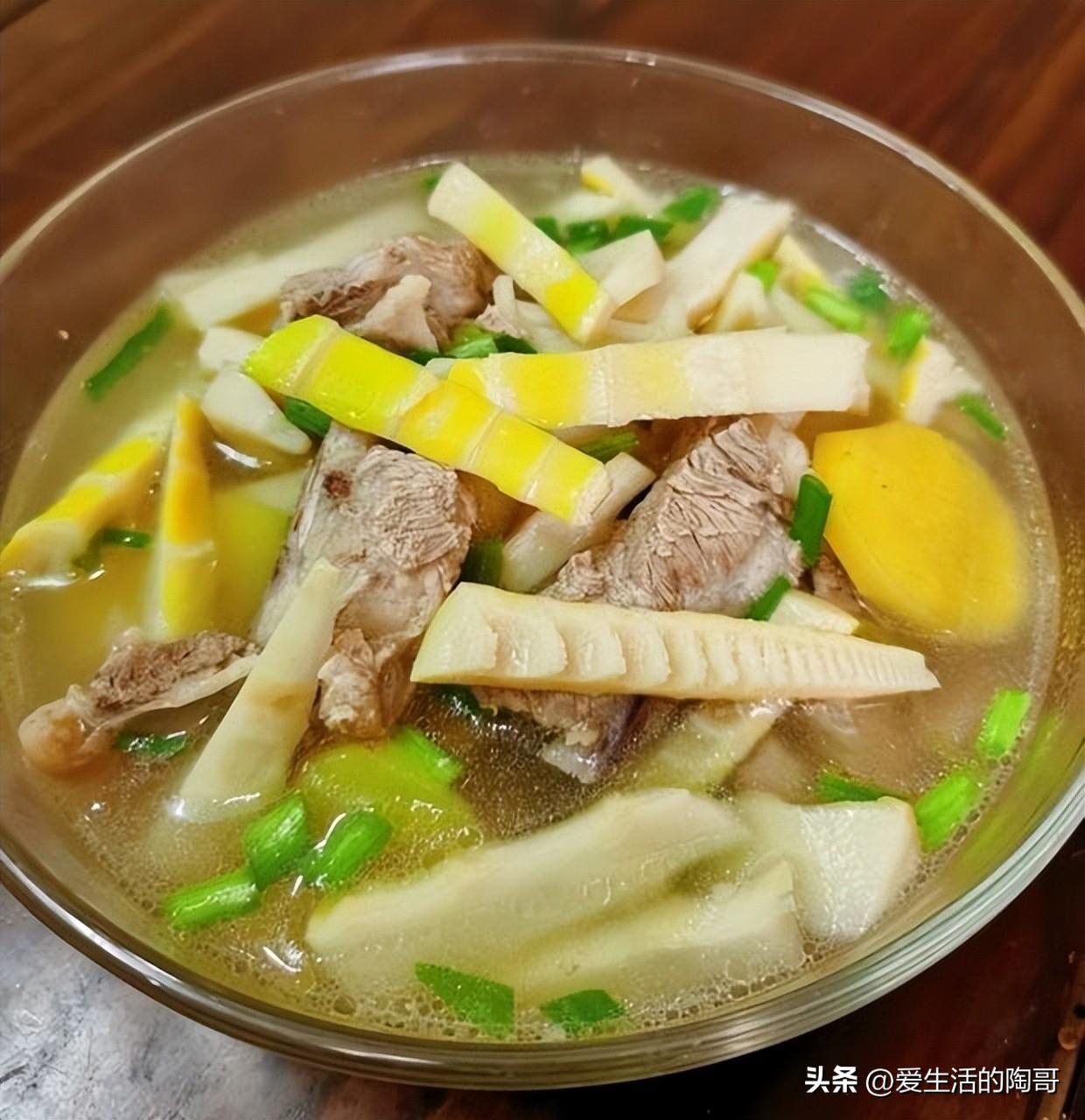 幹竹筍與豬骨一起煮湯喝,湯底清澈清香可以聞到筍子的味道,喫起來還特別清新,保持了原食材的味道,好喝美味養人。