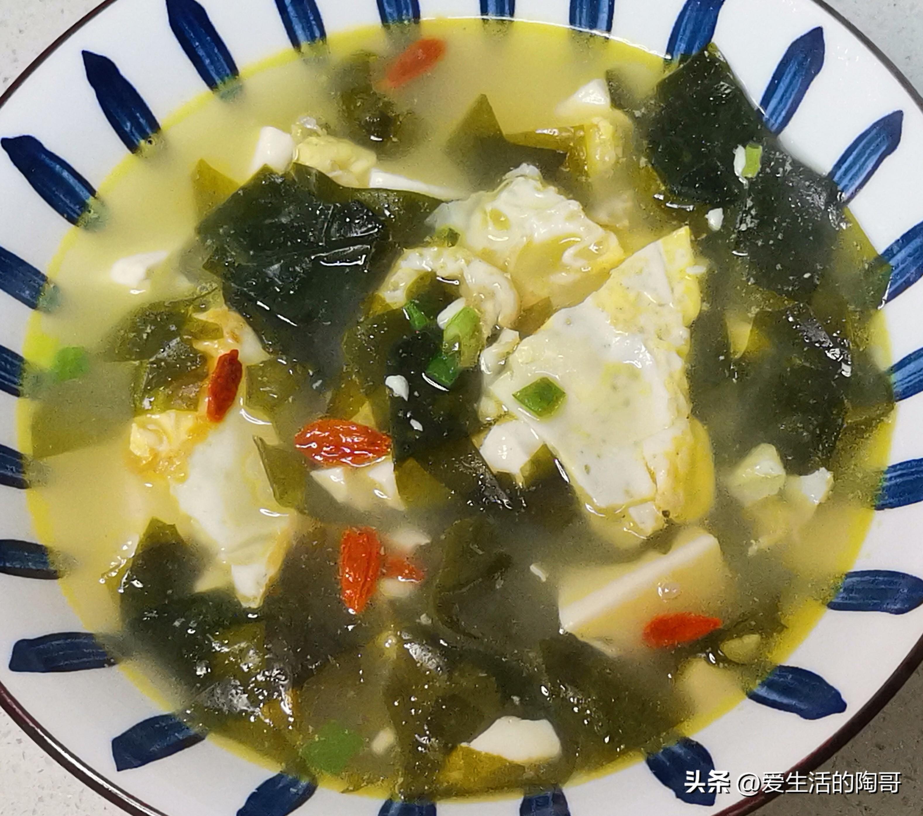 裙帶菜搭配豆腐肉片一起做湯喝,是一道家常營養鮮湯。不僅補充了多種營養物質,還具有美味可口的口感,深受大家喜愛。