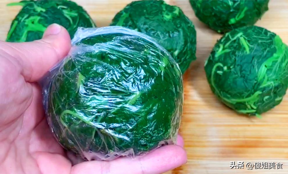 地瓜葉子在秋天大量上市,價格便宜,但新鮮的地瓜葉不易保存。爲了能夠隨時享用地瓜葉的美味,我通常會一次性多囤些,然後進行簡單的處理保存。首先,將地瓜葉洗淨,放入鍋中焯水,看到變綠後,立馬撈出過涼水。接着,把地瓜葉擠淨水分,團成大小均勻的菜糰子,用保鮮袋分裝好,放入冰箱冷凍保存。這樣處理過的地瓜葉可以保存較長時間,每次想喫的時候,直接從冰箱拿出來稍微解凍,就可以用來做菜了,口感和營養基本不會受到影響。