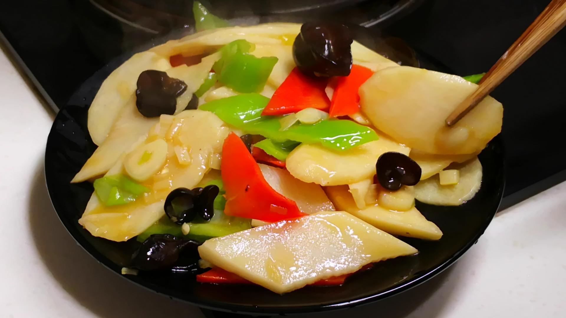 【清炒山藥】山藥去皮後切成菱形片,大蒜切片、青椒和胡蘿蔔切菱形片、蔥切蔥絲備用;起鍋加水,水開後分別放入山藥、胡蘿蔔、和泡軟的木耳各焯水一分鐘;.鍋中加適量油,燒熱後放入蒜片,爆出香味後再放入山藥片、胡蘿蔔片、青椒片和木耳,大火煸炒至青椒斷生後加入適量的鹽、白糖(山藥與白糖一起喫,營養更易被吸收)、蠔油調味,翻炒均勻後再放入蔥絲,然後加入少許水澱粉勾芡,再次翻炒均勻後,即可關火出鍋。
