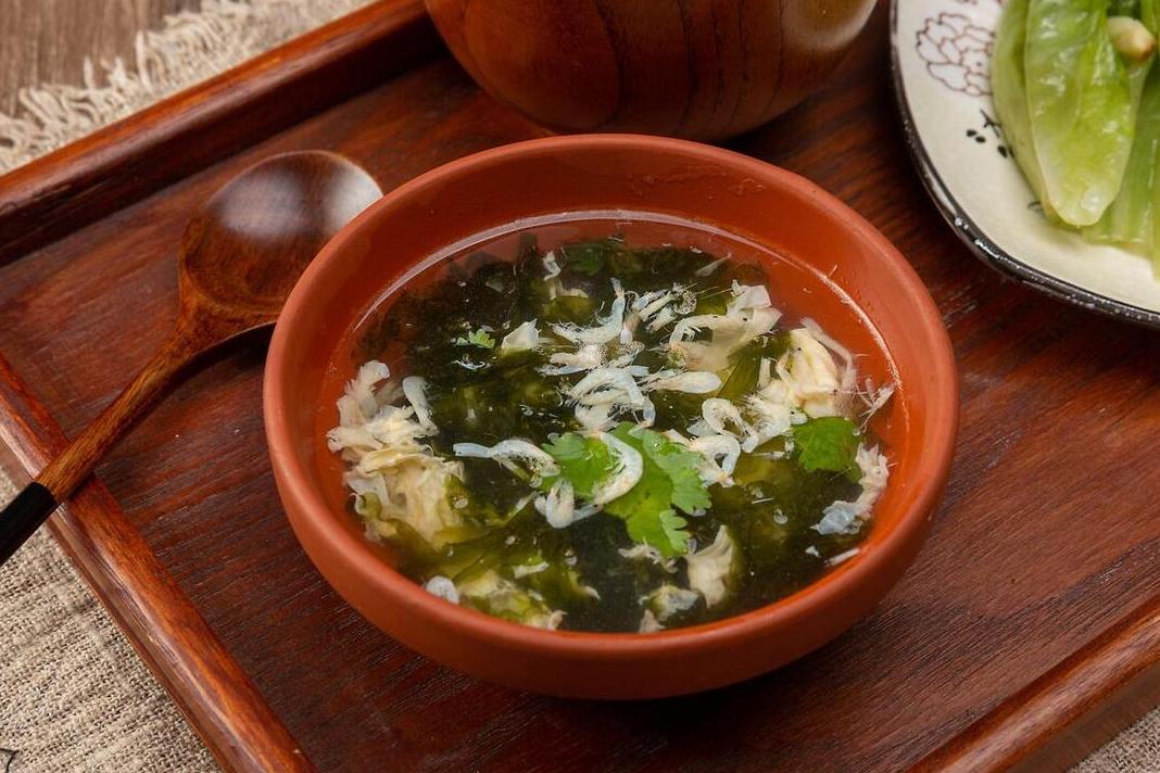 紫菜撕碎後倒在大碗裏,蔥花切好,蝦皮洗淨,連同鹽、白胡椒粉一起,都倒在盛有紫菜的碗裏。雞蛋打散,鍋內倒上適量的清水,燒開了之後將蛋液澆進去,然後將其稍微攪拌一下,直至煮到定型後,將其澆在紫菜碗裏,最後來上幾滴香油,攪拌均勻開喝。