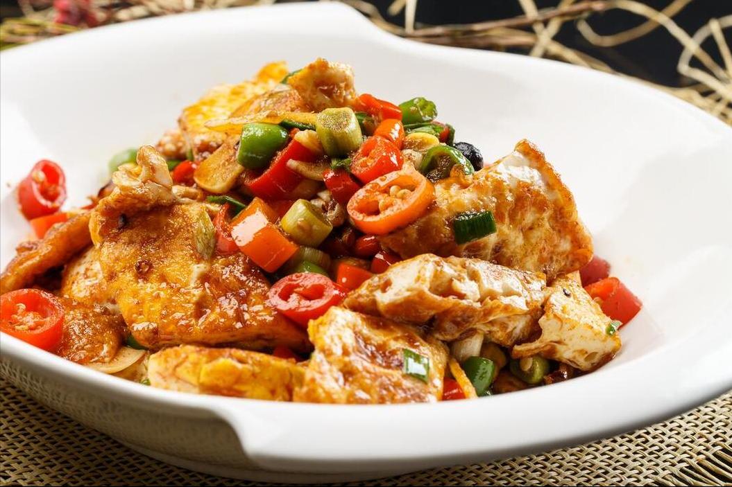 用到:豆腐、蔥蒜、小米椒、雞蛋、澱粉、鹽、雞精、白糖、生抽、蠔油、食用油