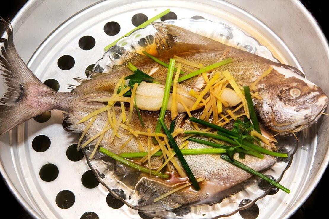 把魚放在鍋子裏蒸,蒸上10分鐘就可以拿出來了,不需要太久,太久了肉質會老。取出來以後的魚,我們將盤子裏的湯汁倒掉,蔥姜切絲後鋪在魚的身上,然後在上面澆上熱油,最後把蒸魚豉油倒在盤子裏調味,就可以開喫啦。