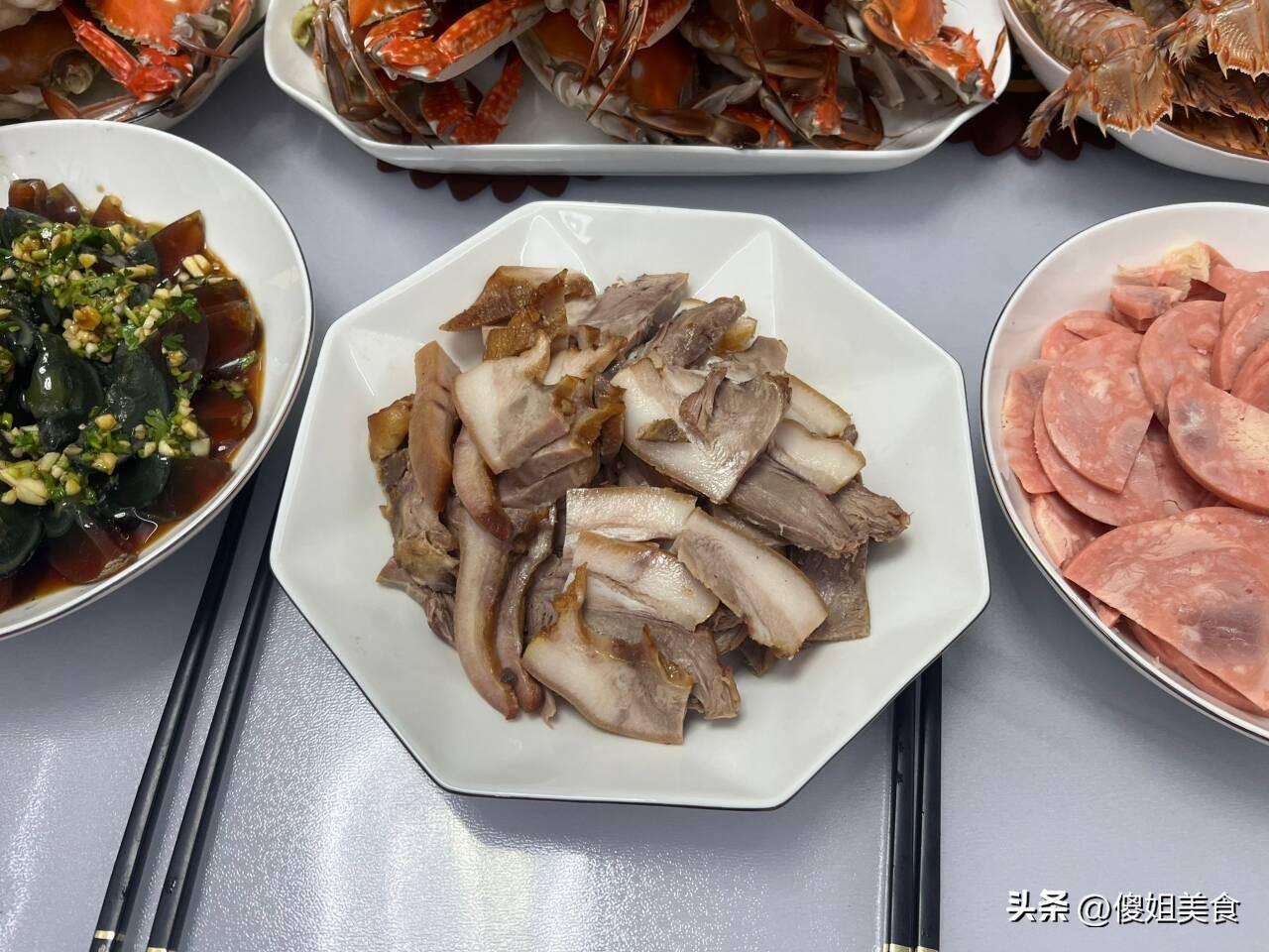 每次姐夫來都少不了這道豬頭肉,姐夫喜歡喫肉,來前還和老公開玩笑必須安排上豬頭肉呢,這不老公一早就去肉食店排隊買這家最好喫的豬頭肉,剛出鍋的豬頭肉最好喫,香而不膩。