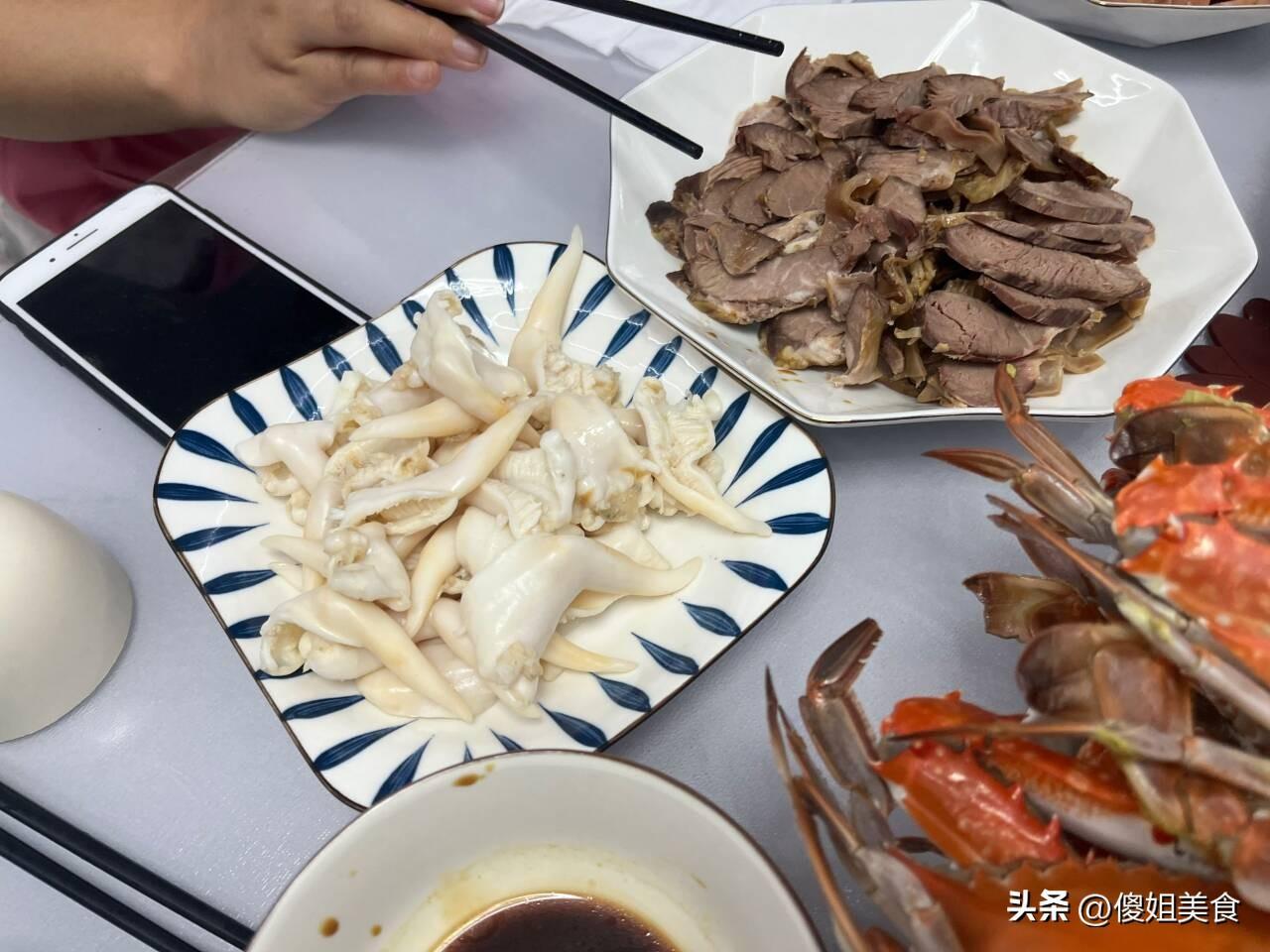 都是硬菜啊,大家有沒有喫過鳥貝,鳥貝收拾起來麻煩些,需要一個個用剪刀剪開,把裏面的髒東西取出來清洗乾淨。鳥貝有兩種喫法,一種是煮熟後蘸辣根喫,另一種是涼拌。家人聚在一起有着說不完的話,老公和姐夫邊喝酒邊聊天,這下喝盡興了。