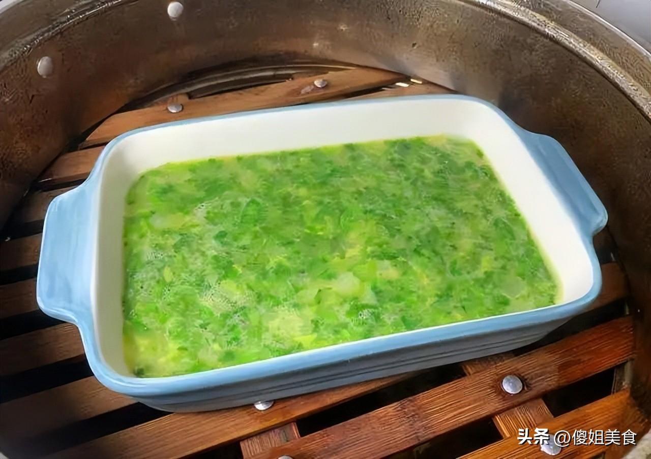 1、現在芥菜葉子和小白菜一樣,正是鮮嫩的時候,和雞蛋一起蒸個糕,營養又滋補。首先把幾個雞蛋打進碗中,再準備1.5倍的溫水加少許食鹽攪勻。2、接着把溫水倒進雞蛋中,邊倒邊攪,完成後爲了喫起來口感更好再把蛋液過濾一遍。3、最後再把焯水後剁碎的芥菜葉子倒進蛋液,攪勻後開水上鍋,再蒸十分鐘就可以出鍋了。4、出鍋後切成塊,再配上自己喜歡的蘸料,爽滑又下飯。