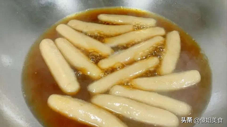 5、鍋裏再次加入清水,倒入少許的紅糖,用勺子輕輕的攪動將紅糖完全的化開,水開以後倒入芋圓和適量的香油、蔥花,用勺子輕輕地攪動一下就可以出鍋了。芋頭是一種鹼性食品,可以有助於我們體內的酸鹼平衡,適合各類人羣食用。