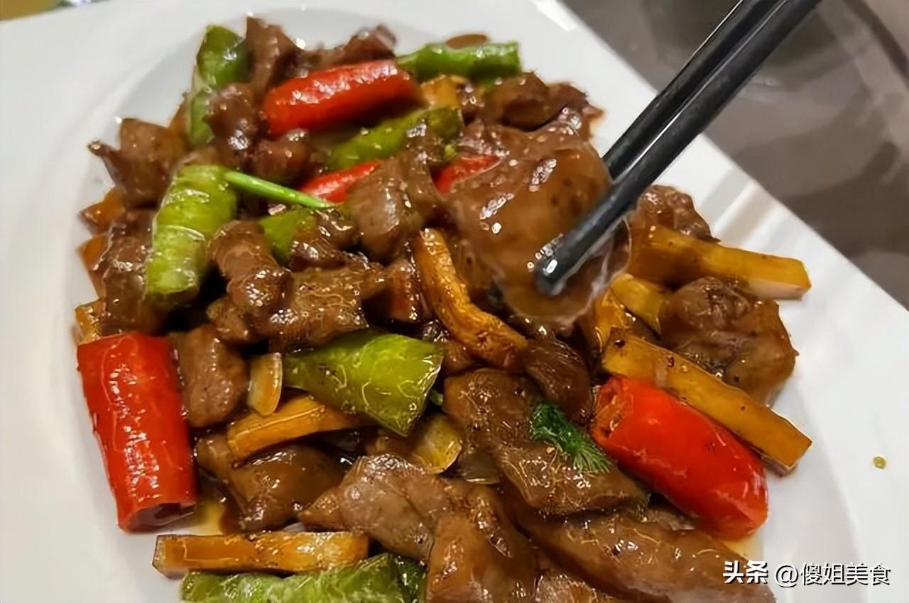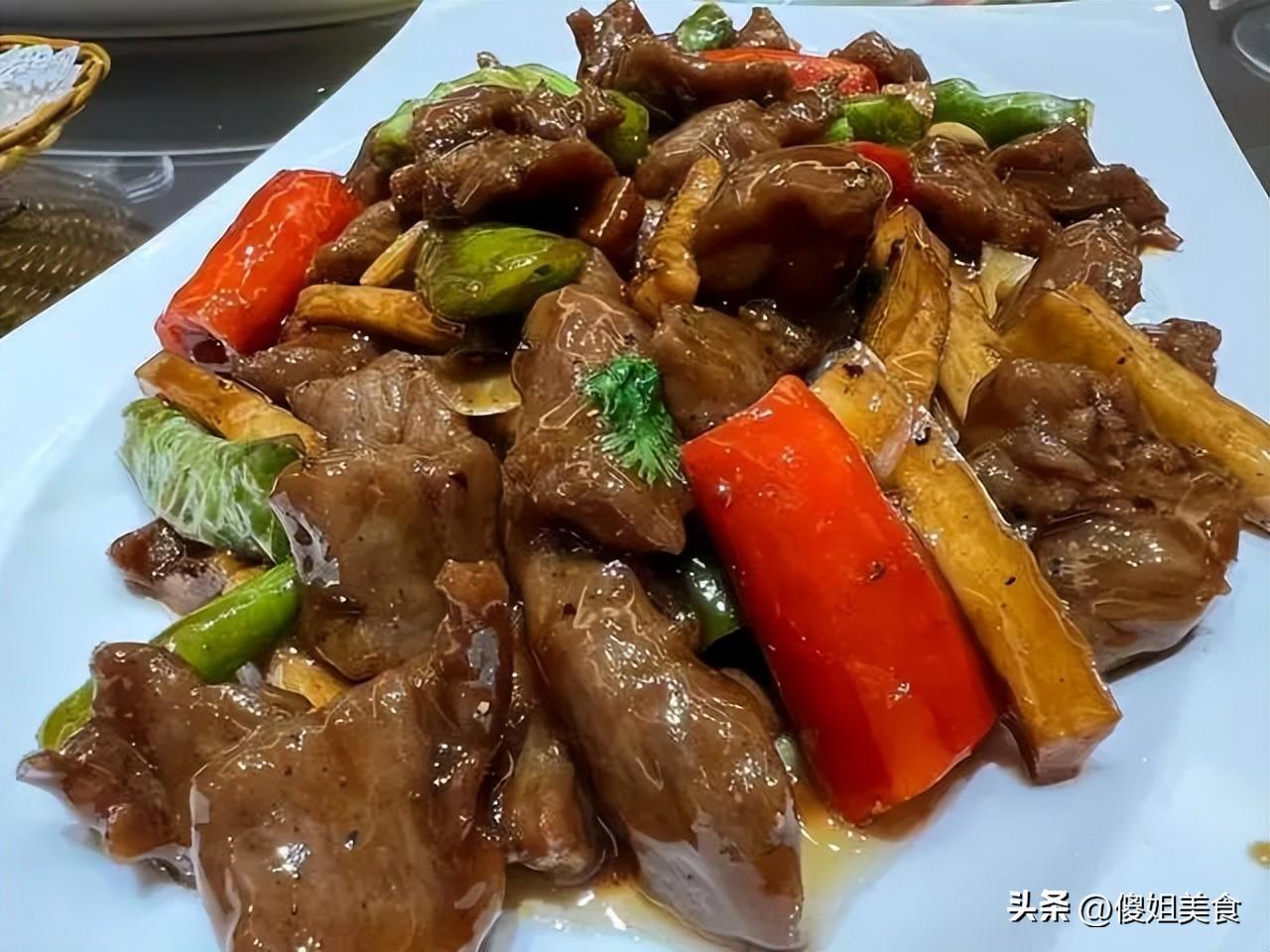 3、牛肉醃好後起鍋燒油,這裏油要適量多些,四成油溫時下入牛肉滑散,再放入姜蒜片一塊炸出香味,大約一分鐘左右牛肉變色後把牛肉盛出來控油備用。4、鍋中留底油,倒入杭椒和紅椒,翻炒至表面虎皮狀後,倒入滑好的牛肉,再淋上之前兌好的料汁,翻炒均勻就可以了。