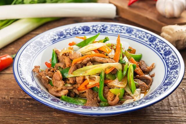 2、鍋中熱油,放入姜蒜末爆香,加入醃製好的羊肉片快速翻炒至變色,接着放入大蔥段繼續翻炒,最後加入適量鹽、白糖、胡椒粉調味即可出鍋,這道菜香氣撲鼻,口感鮮嫩。