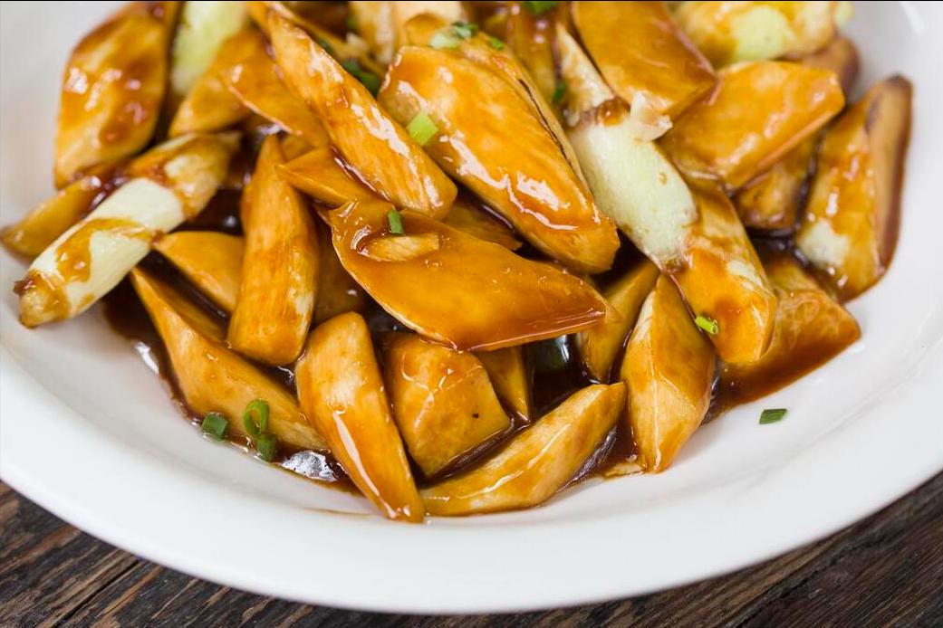 用到:茭白、裏脊肉、生抽、鹽、味精、料酒、澱粉、食用油