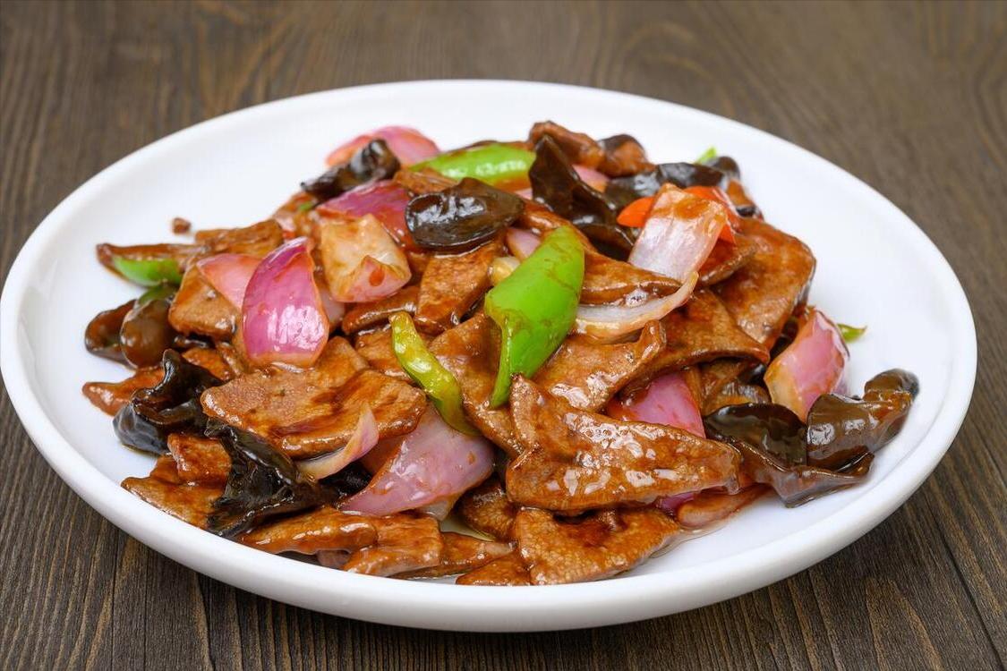 食材:豬肝、青紅辣椒、蔥薑蒜、洋蔥、料酒、澱粉、鹽、白胡椒粉、雞精、生抽、老抽、食用油