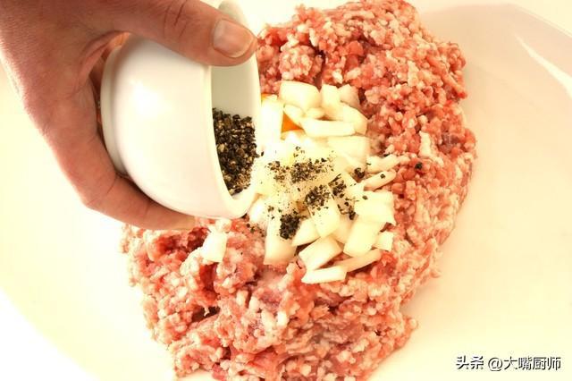 將切碎的肉餡放入大碗中,根據個人口味加入適量鹽。注意,加鹽時要分次少量加入,邊加邊攪拌,讓鹽充分溶解並被肉餡吸收。這一步的目的是初步調味,激發肉的鮮味。
