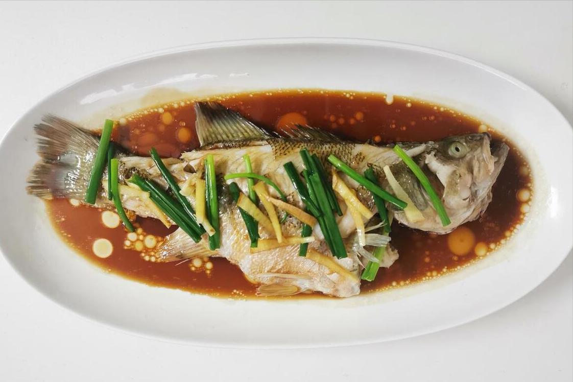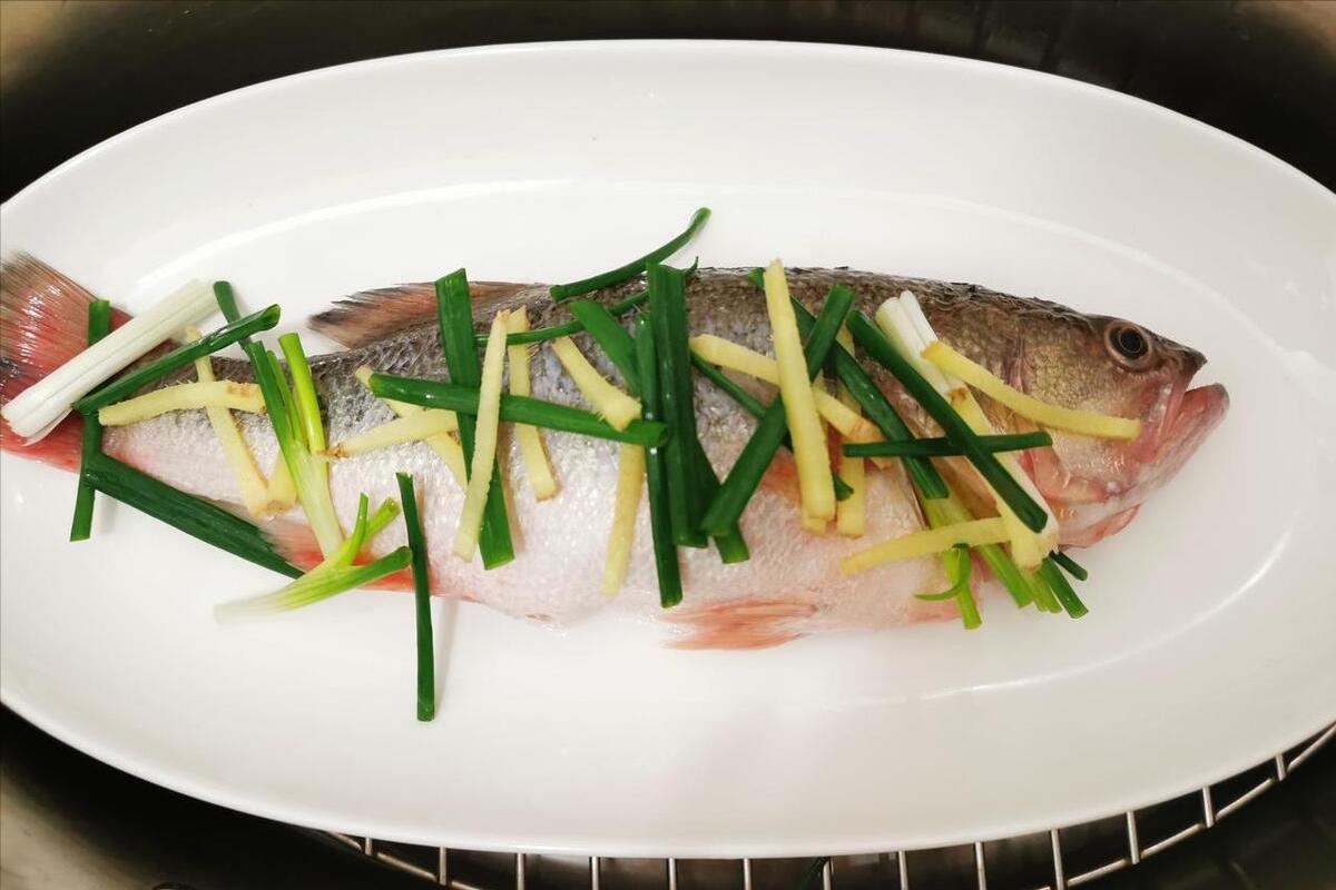 用到:鱸魚、熱油、蒸魚豉油、蔥絲、薑絲