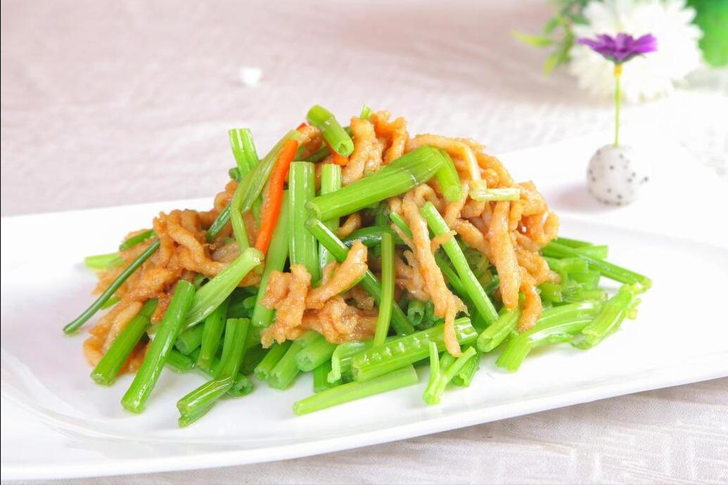 用到:芹菜、裏脊肉、生薑、料酒、澱粉、白胡椒粉、鹽、味精、生抽、植物油
