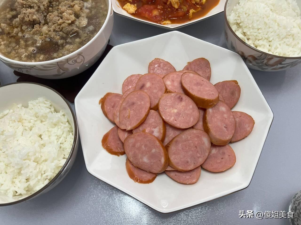孩子們都喜歡喫肉,弟媳婦早上早早的就去鎮上的肉食店買食材,知道孩子們愛喫香腸,特意買的香腸。香腸很省事,直接切一切放在盤子裏,端上桌喫就可以,不用吐骨頭,好喫又省事。
