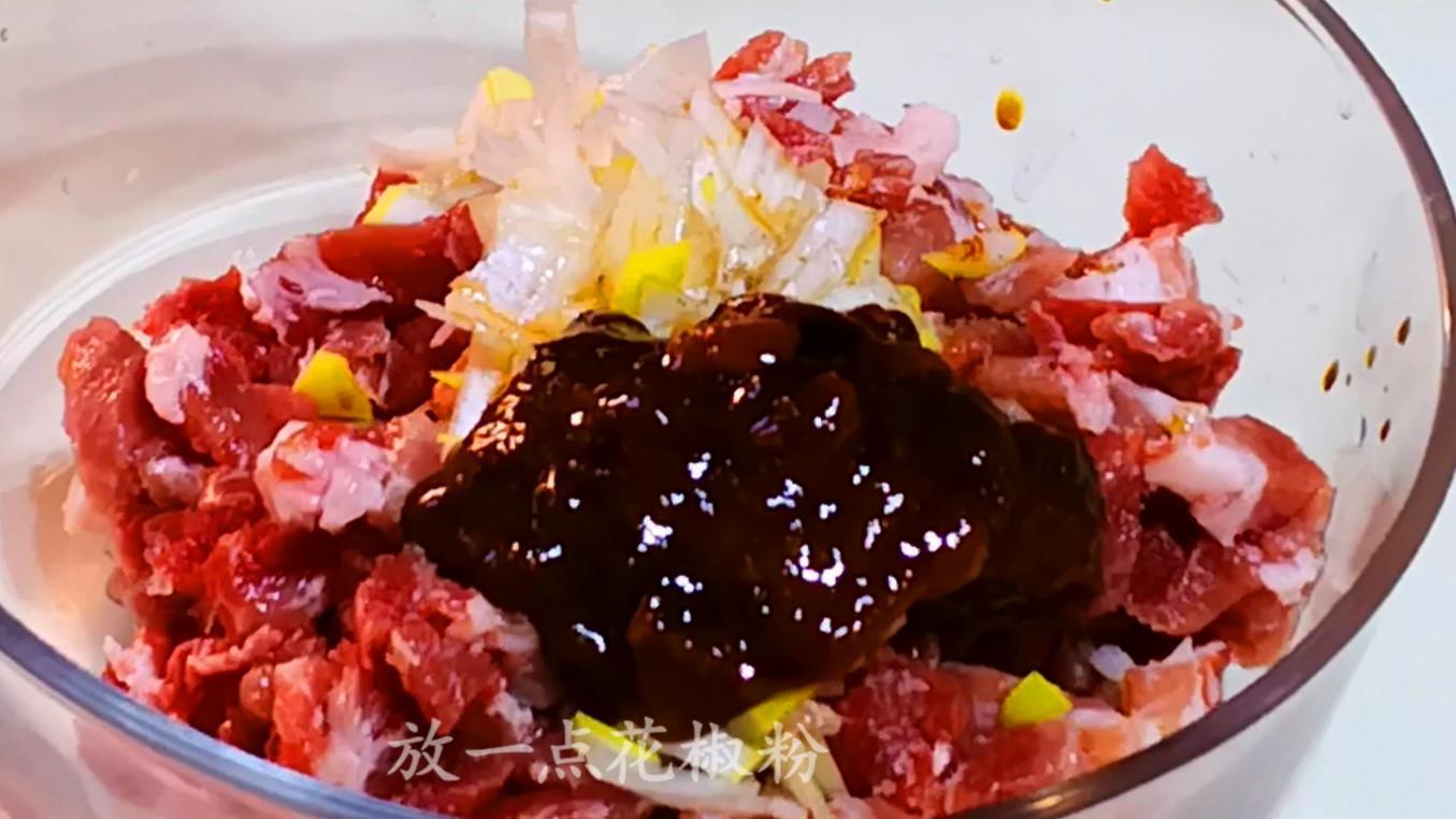 加黃豆醬醃製肉丁,是白菜包子好喫的關鍵,一定要加哦~