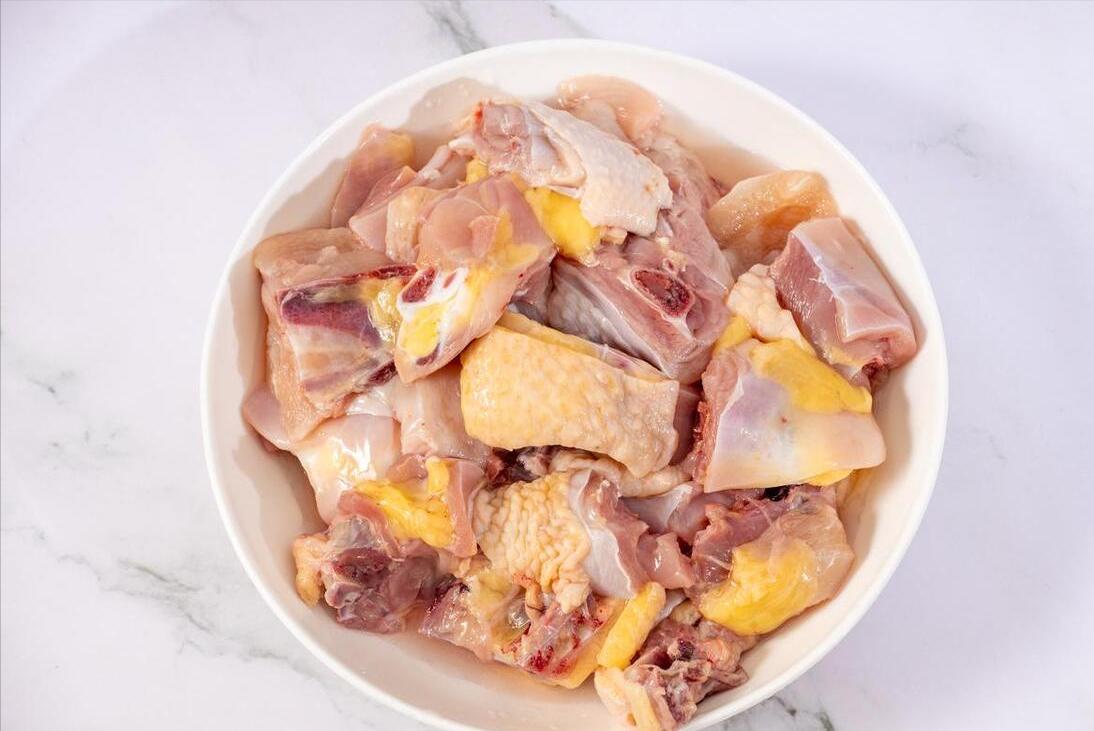 1、準備一整隻雞,把雞肉剁成小塊後,先放在水中泡上20分鐘這樣,去除多餘的血水、污水,還有各種髒東西,腥味就能減少了,而且還可以讓雞肉的肉質更軟爛。
