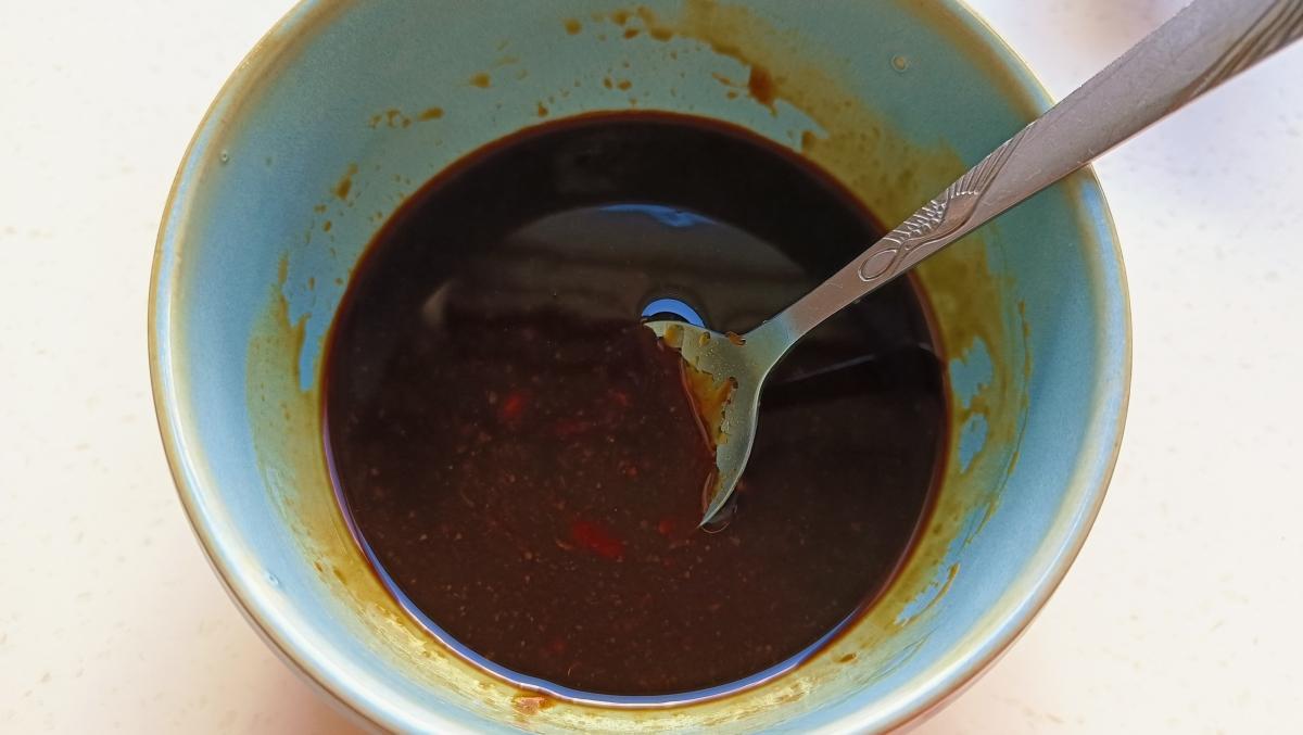 3.再來調個料汁:碗中分別加入兩勺生抽、兩勺黃豆醬、一勺老抽,兩勺蠔油,3勺料酒,攪拌均勻後備用。