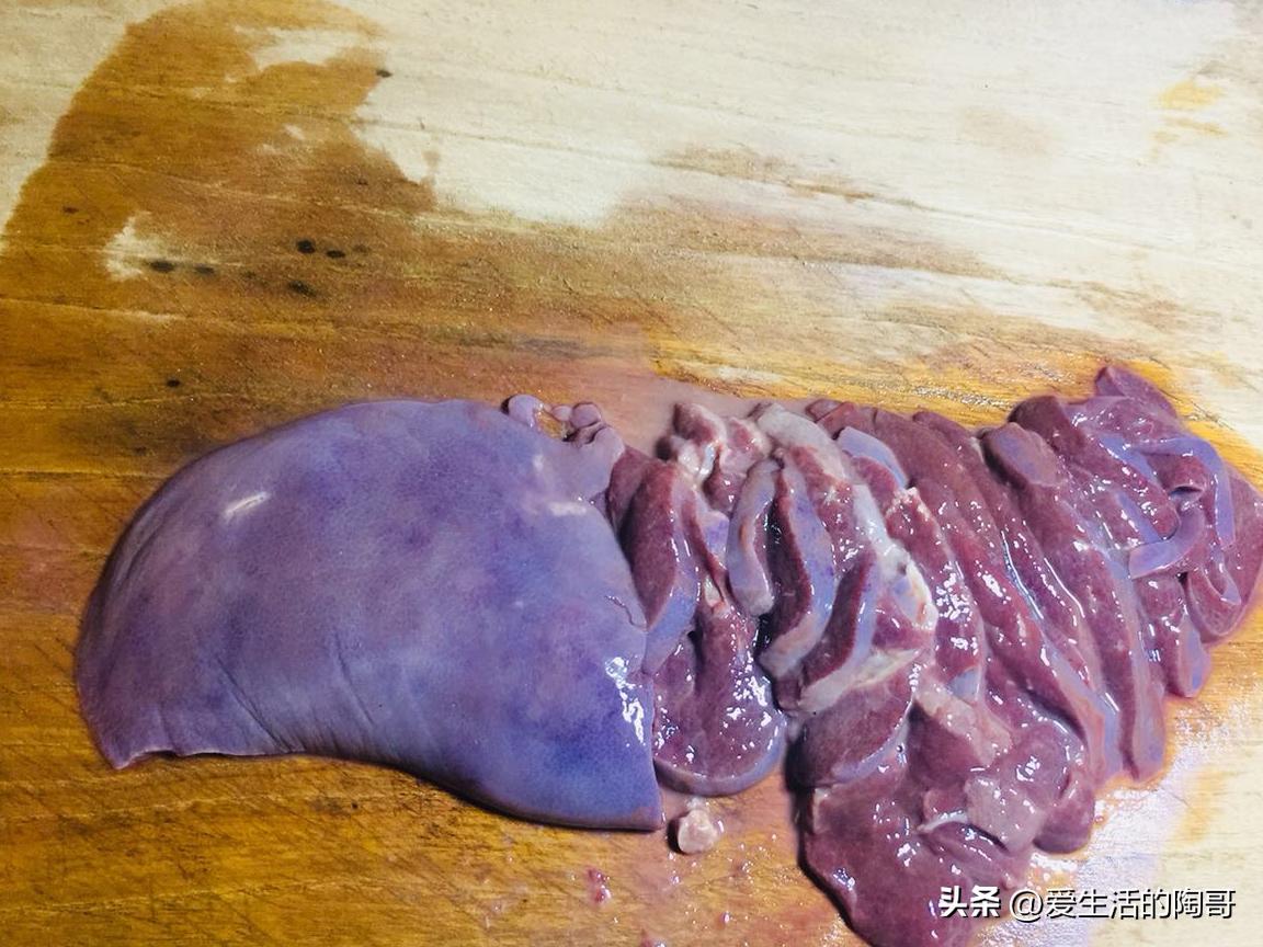 做法:1新鮮豬肝清洗切薄片,放水裏沖洗, 瀝乾水分