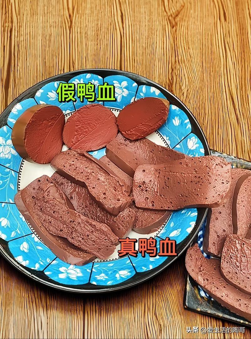 1看顏色。真鴨血呈暗紅色,而假鴨血則一般呈咖啡色