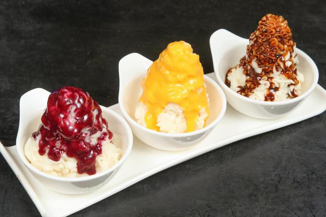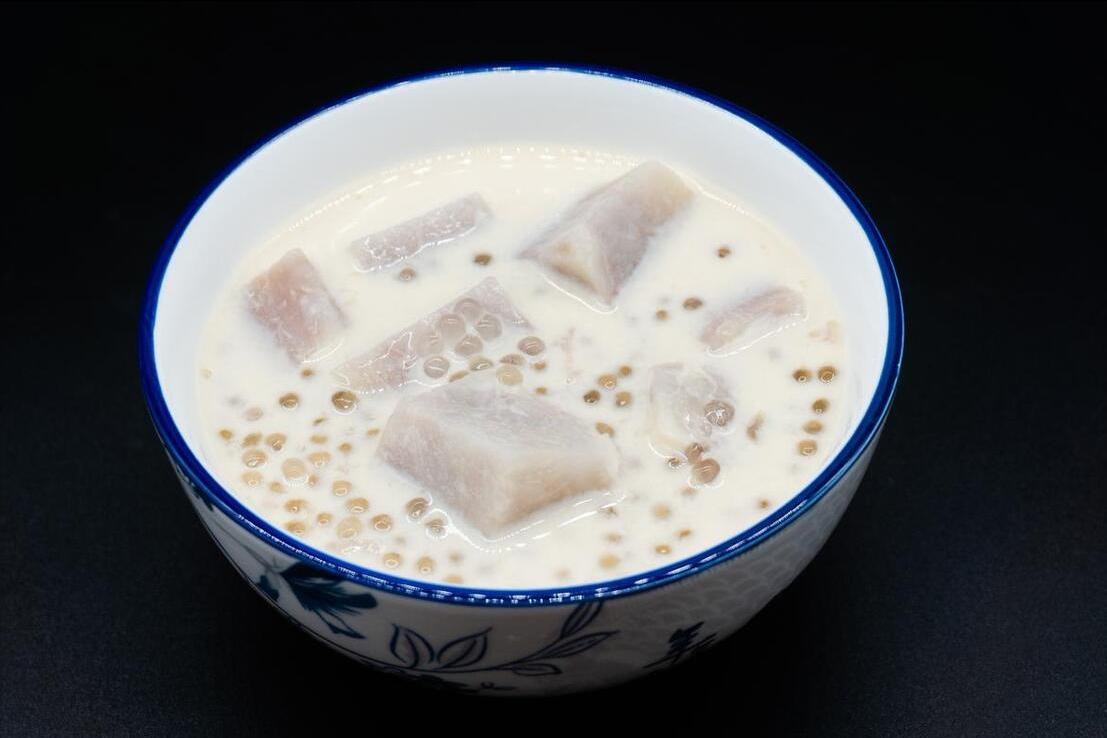 用的:荔浦芋頭200g、紫薯100g、牛奶10g、糯米粉90g、煉乳10g、椰奶適量