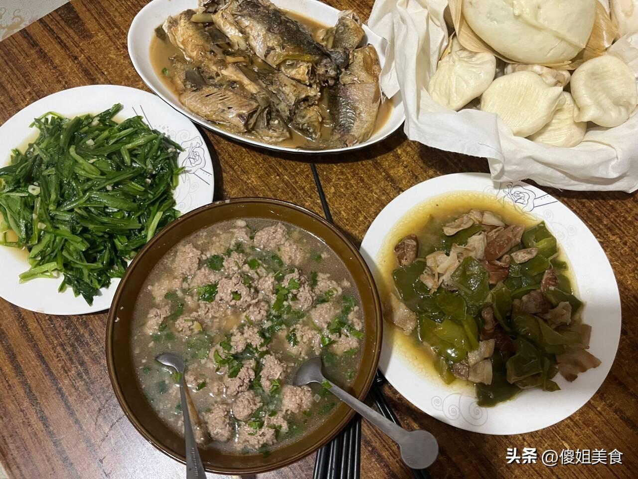 婆婆回來這兩天可忙壞了,蒸了兩大鍋饅頭,天冷了也不會壞,公公喫的時候隨時熱一下就可以。這不還蒸了韭菜肉餡的大包子,老兩口這晚餐真是太豐盛了,也不像別人所說的家裏有礦,也是家常便飯,只是婆婆不在家,偶爾回來後改善一下伙食罷了。