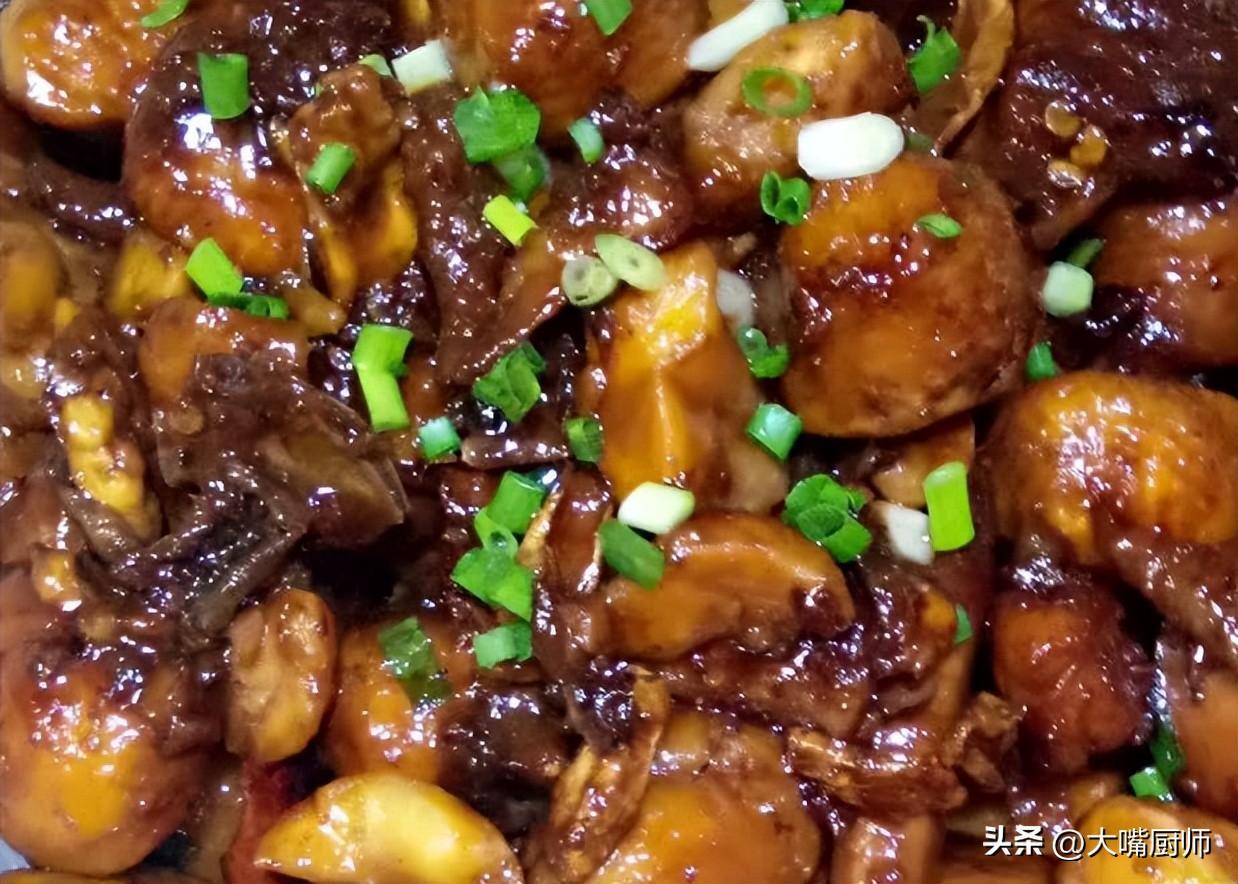 調味:加入鹽、生抽和老抽翻炒均勻,再加入板栗和適量溫水,燜煮至食材熟透。