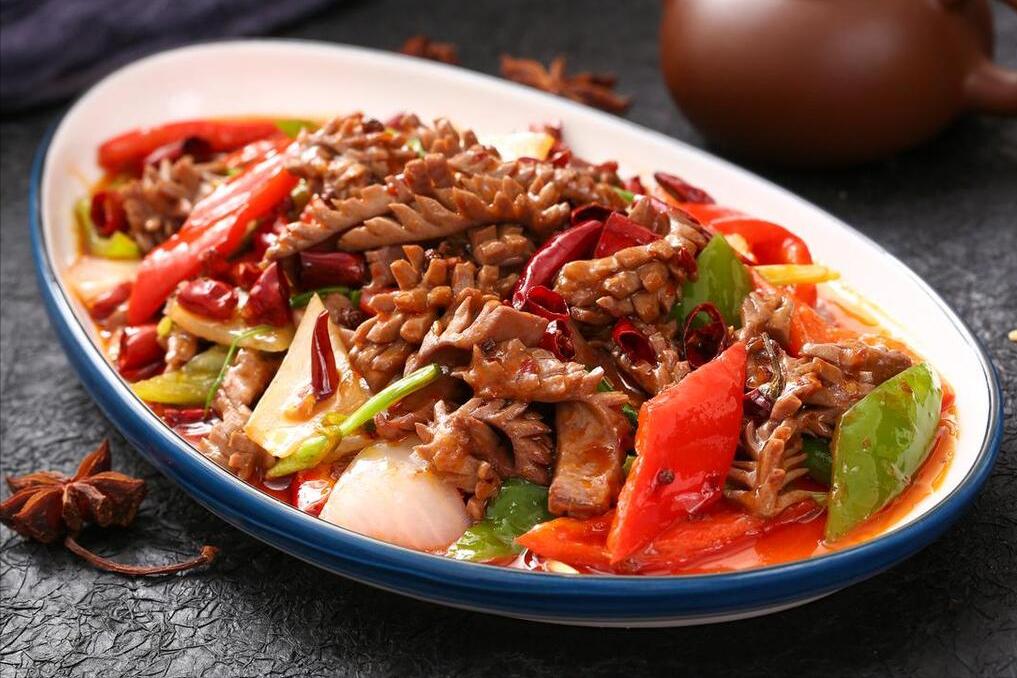 食材:豬腰、尖椒、洋蔥、小米椒、蔥薑蒜、鹽、白胡椒粉、雞精、白醋、生抽、老抽、料酒