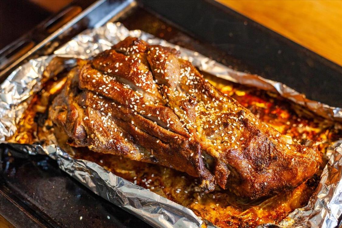 5、具體要多少溫度,烤多長時間?180度烤上50分鐘後取出來,打開錫紙以後,將羊排稍微翻一下面,然後在上面刷一層食用油,接着再來點孜然粉和孜然粒,重新包起來以後繼續放入烤箱中,轉爲200度繼續烤上20分鐘的時間就差不多了,拿出來等不燙手之後,開喫!