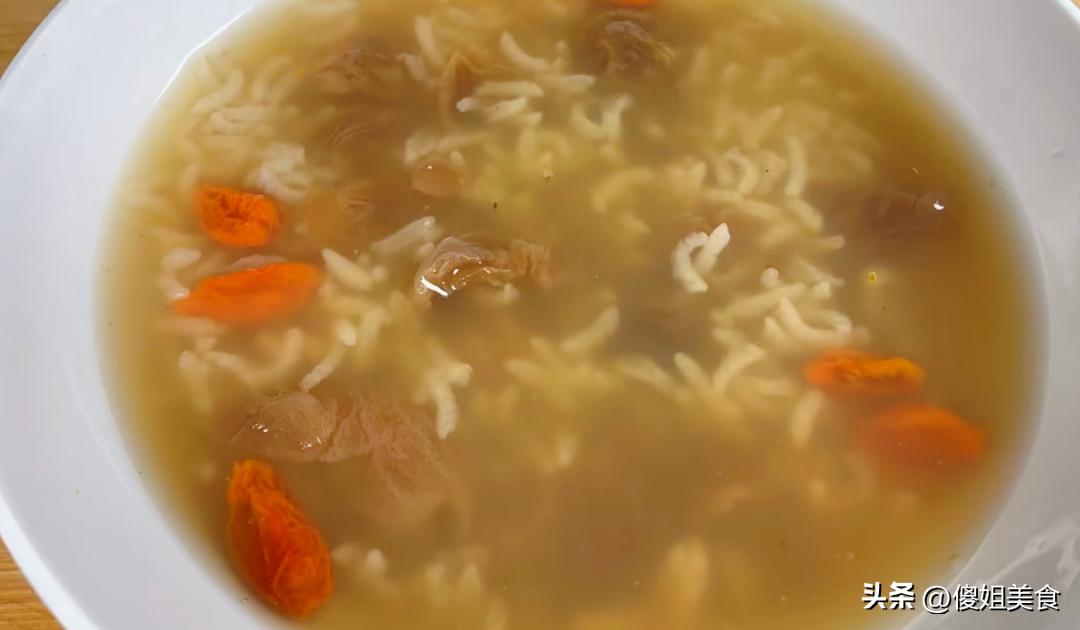 糯米和桂圓的結合,喫起來格外香甜軟糯。桂圓補氣血、安神助眠,枸杞明目益肝,這道粥特別適合冬季進補。