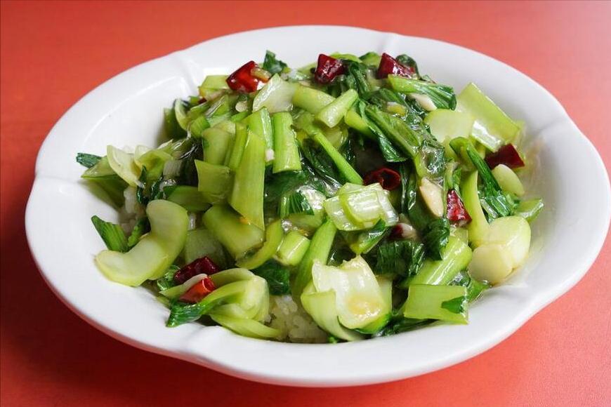 食材:青菜、大蒜、辣椒、食鹽、味精、豬油/植物油