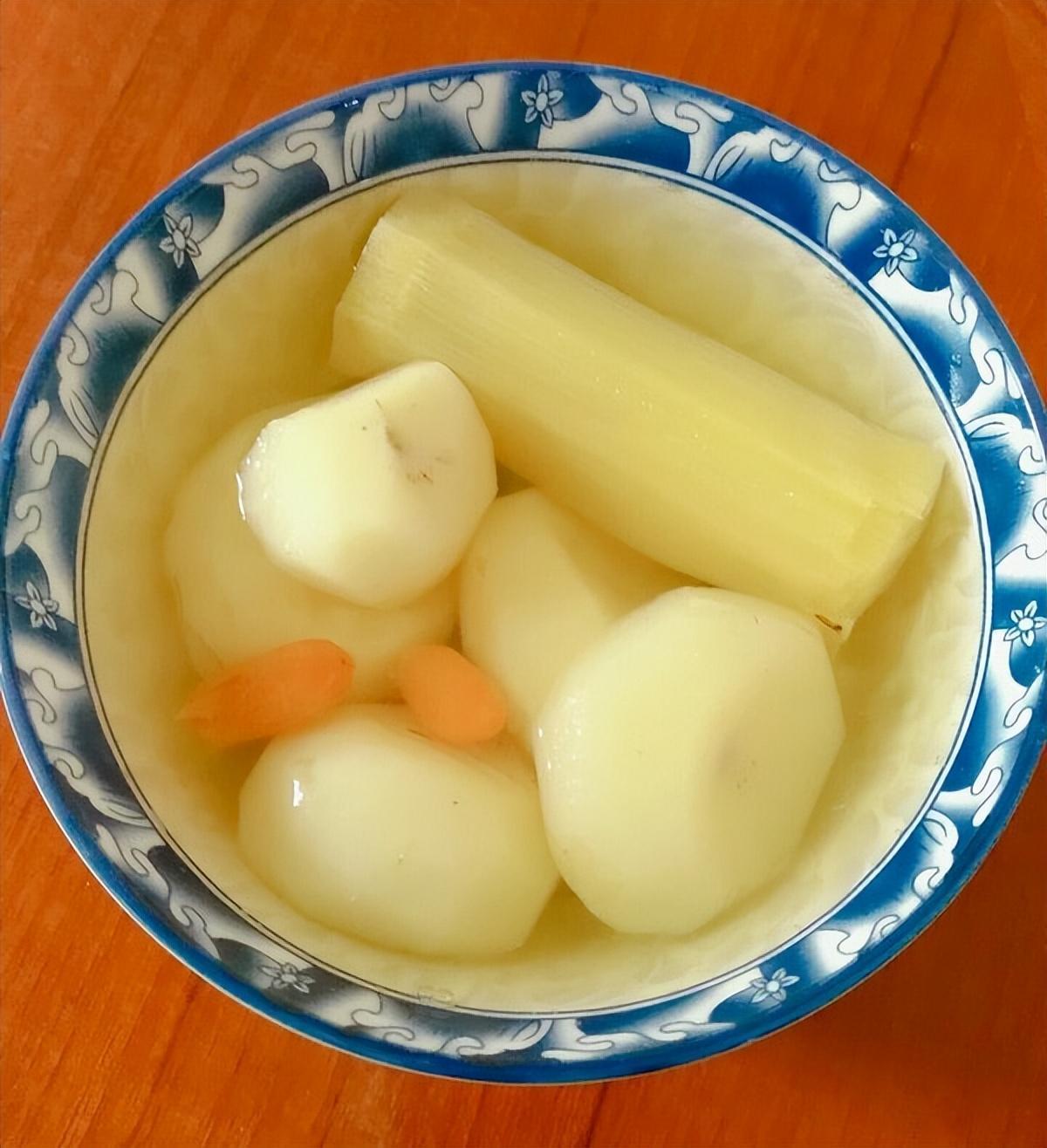 推薦喫法, 甘蔗雪梨馬蹄水。幾種食物一起做湯和,香甜美味,爲身體補充水分,滋補身體,對身體健康很有好處。